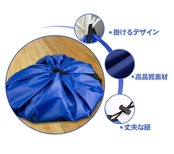 おもちゃの片付け超簡単!紐を絞って一瞬で片付けます。この上で遊べできて、遊び終わったあと紐をキュッと絞めるだけでお片付け完了!おもちゃ箱よりとても便利です。特にやプロック等パーツが多い上に、細かい玩具の片付け、おもちゃ収納袋で快適に。