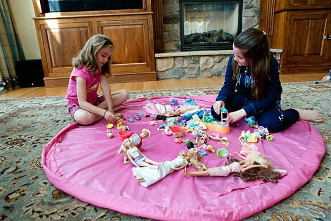 siawadeky おもちゃ収納バッグ 子ども プレイマット 積み木 お片付け簡単 特大マット 直径150cm 折り畳みで便利 収納用品 自宅&外遊び (ピンク)