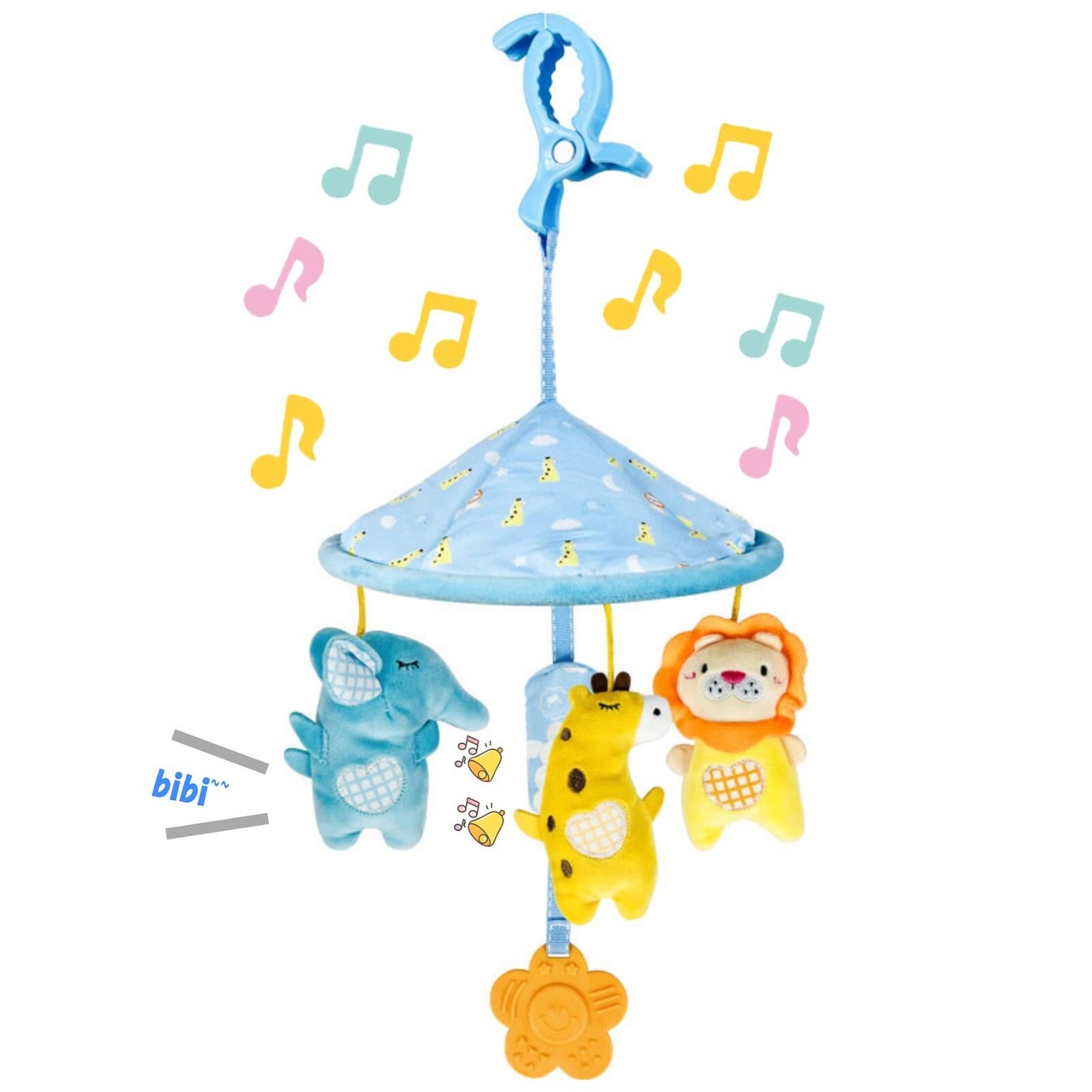 Smiim ベビーカー メリー おもちゃ チャイルドシート 車 おもちゃ 子供 ベビー あかちゃん 赤ちゃん おでかけ用 0歳 1歳 2歳 玩具 出産祝い 誕生日 プレゼント (水色)
