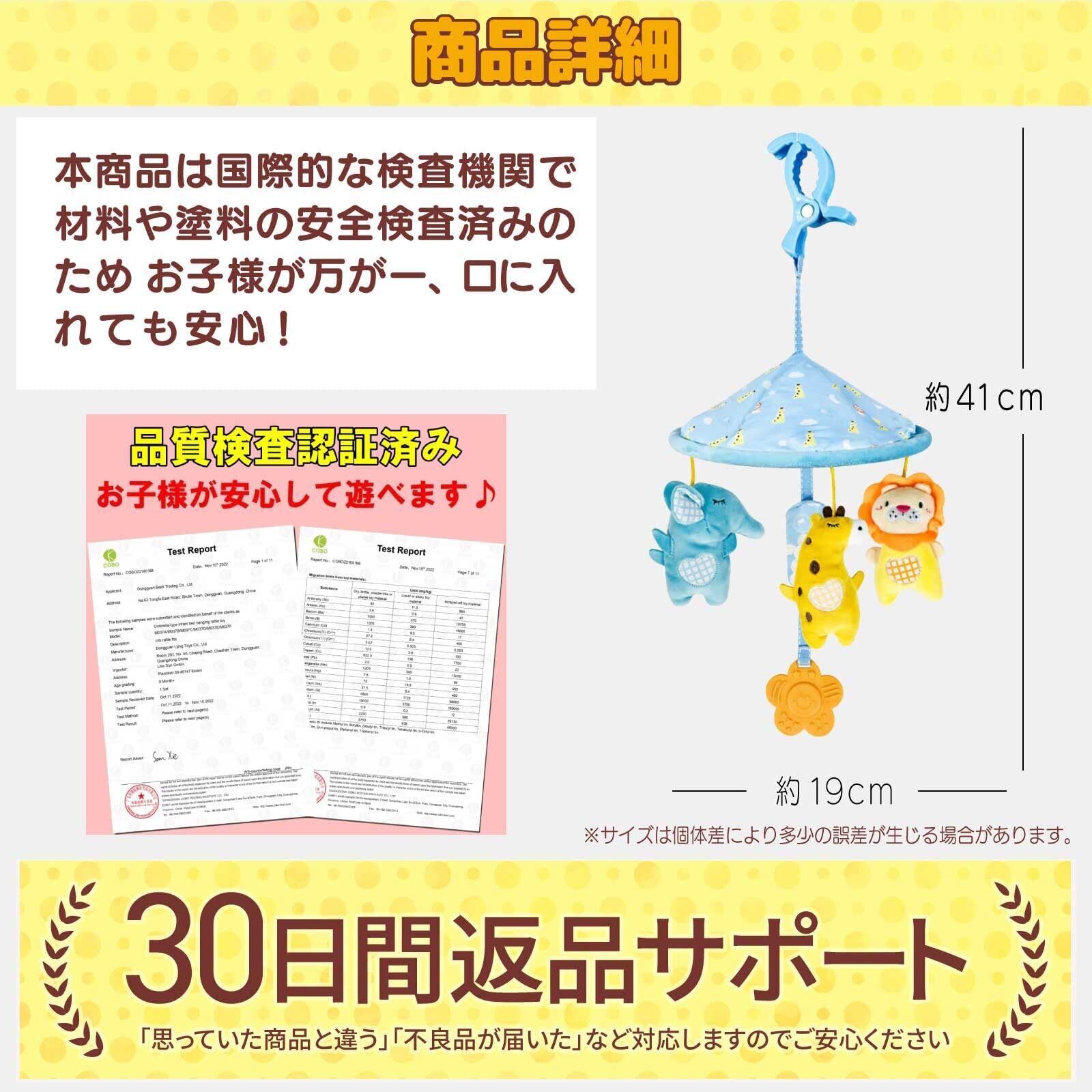 【数量限定】Smiim ベビーカー メリー おもちゃ チャイルドシート 車 おもちゃ 子供 ベビー あかちゃん 赤ちゃん おでかけ用 0歳 1歳 2歳 玩具 出産祝い 誕生日 プレゼント (水色) | 無意味ステッカー