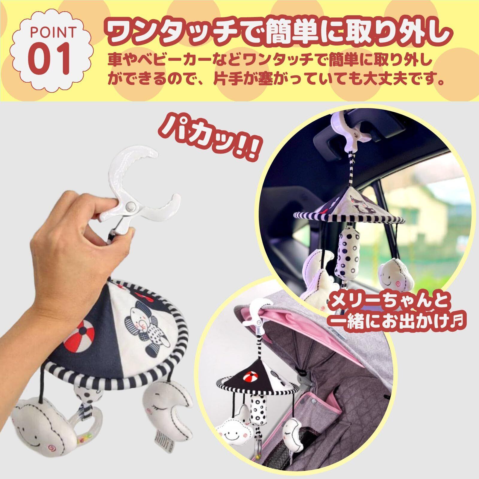 Smiim ベビーカー メリー ベッド メリー チャイルドシート 車 おもちゃ がらがら ガラガラ ラトル あかちゃん 赤ちゃん 玩具 出産祝い 誕生日 プレゼント 0歳 1歳 2歳(メリー)