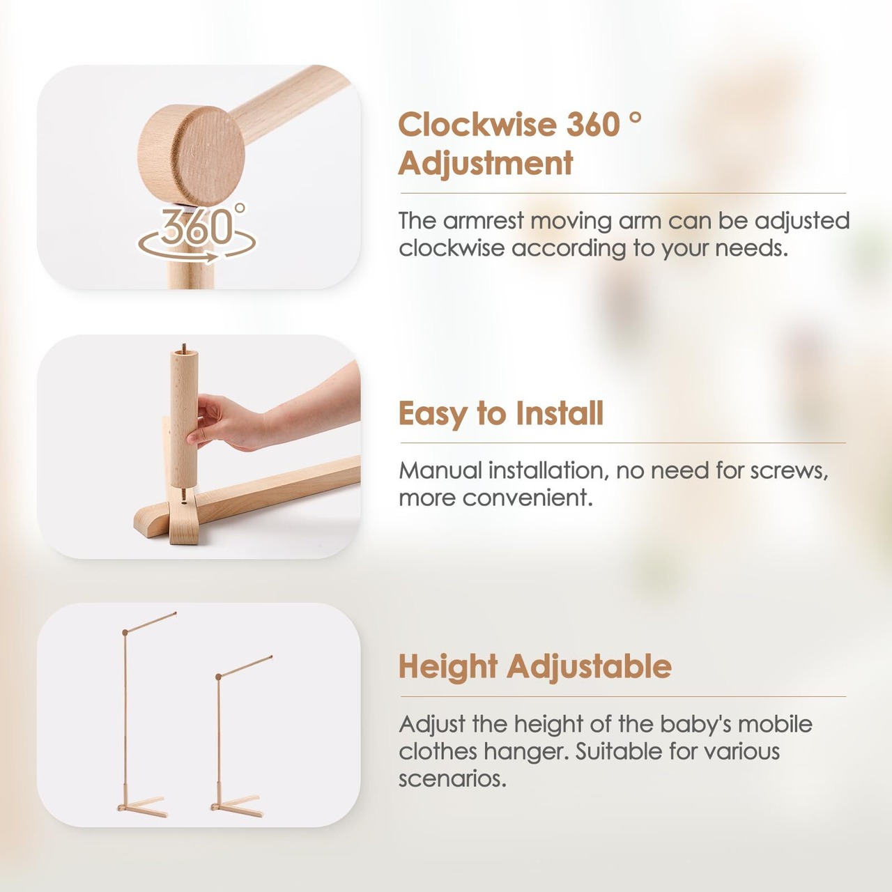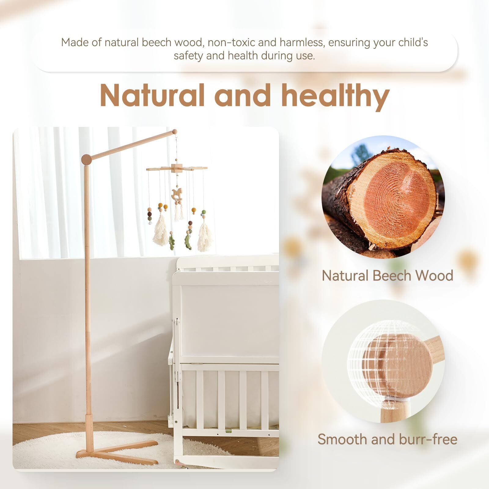 Etucdose ベッドメリー スタンド式木製アーム ベビーモービル 取り付け簡単 吊り下げ式 ベッド飾り 寝かしつけ用品 子供用用寝具 インテリア 出産準備 出産祝い 赤ちゃん 知育寝具