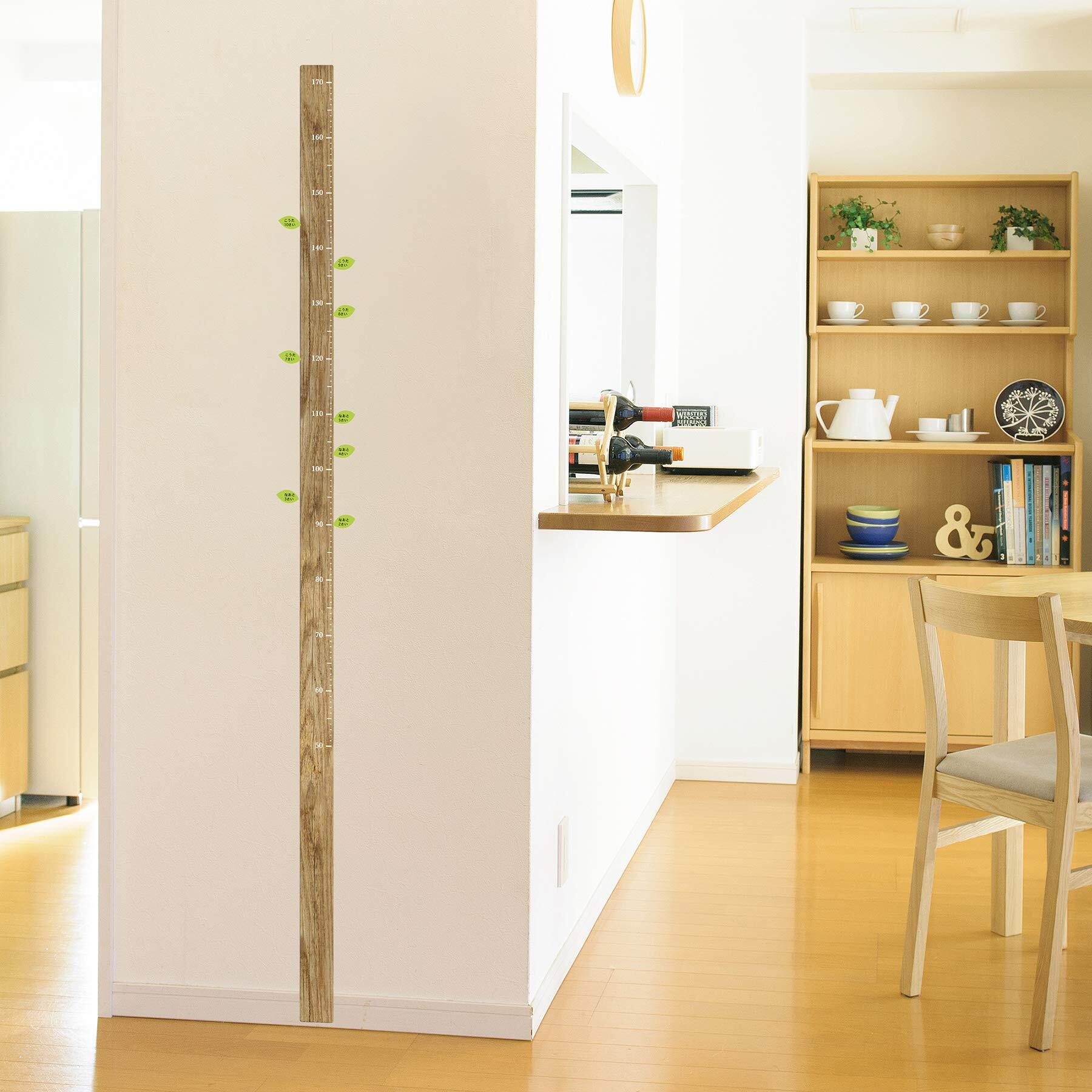 壁に貼って使う身長計のウォールステッカーです。高さのメモリは50cm~170cm。お子様の成長に合わせて長くお使いいただけます。