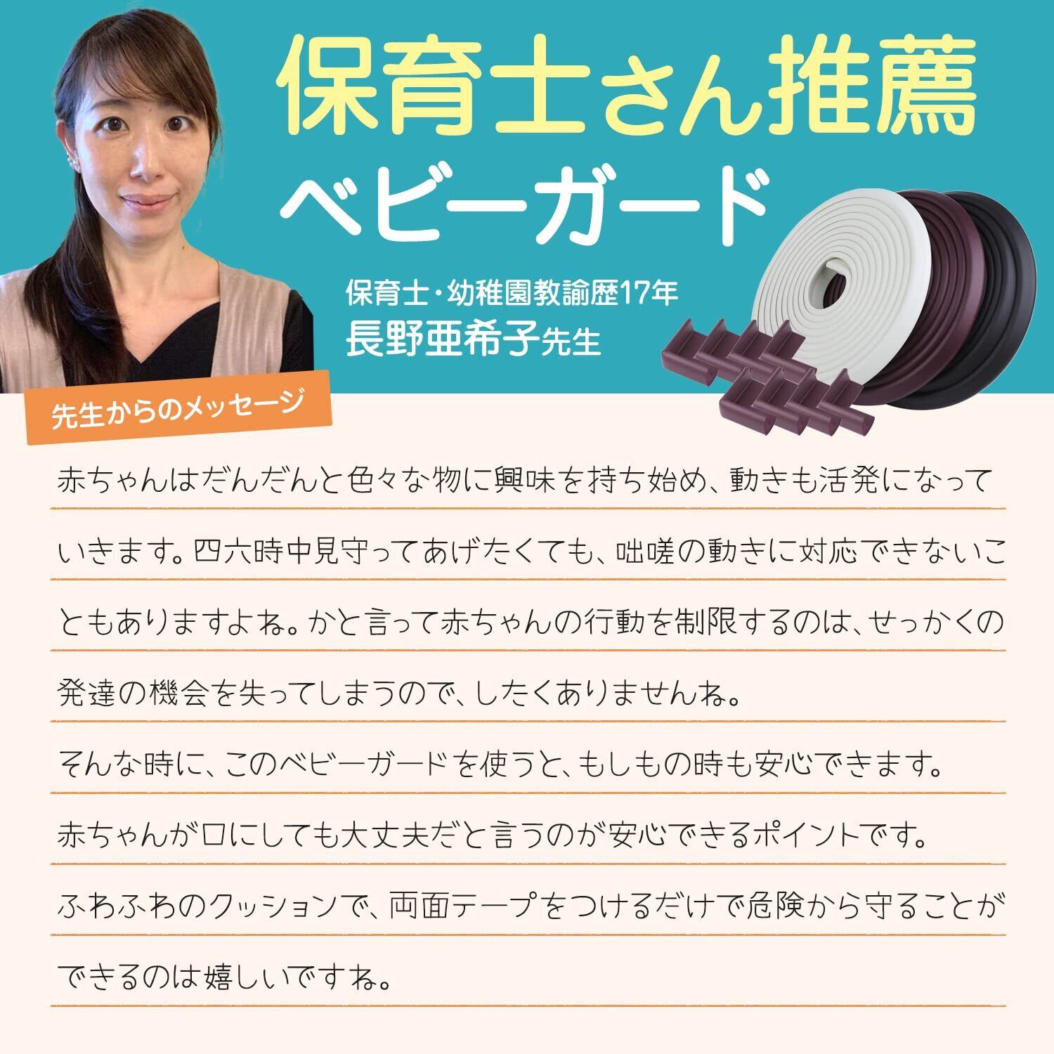 【ベビーガード6m&コーナー8個セット】つかまり立ちやヨチヨチ歩きをはじめた赤ちゃんは、家具の端で頭や顔をぶつける危険が高く、大ケガにつながる心配があります。あらかじめケガをしやすい場所に、ベビーガードを取り付けておけば、赤ちゃんが動き回って転んでも安心。ホワイト、ブラウン、ブラックの3色からお選びいただけます。