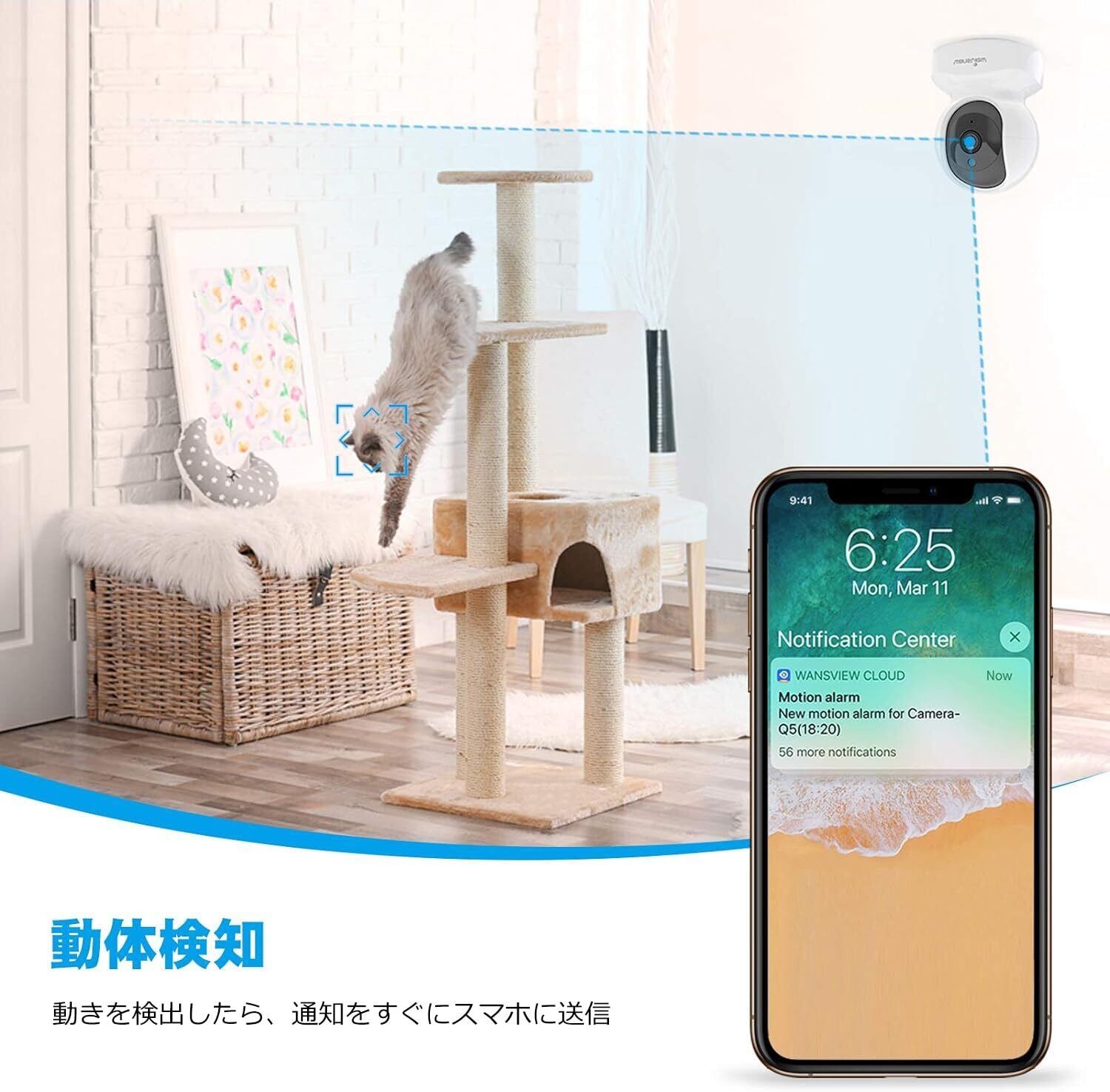 【新春セール】Wansview Q5ネットワークカメラ 300万画素 2Kベイビーモニター ワイヤレス屋内防犯 360度 ベビー 老人 ペット見守り 2.4GWi-Fi対応Wi-Fiカメラ 動体検知 双方向音声 暗視撮影 録画可能 アプリ無料 白 | 無意味ステッカー