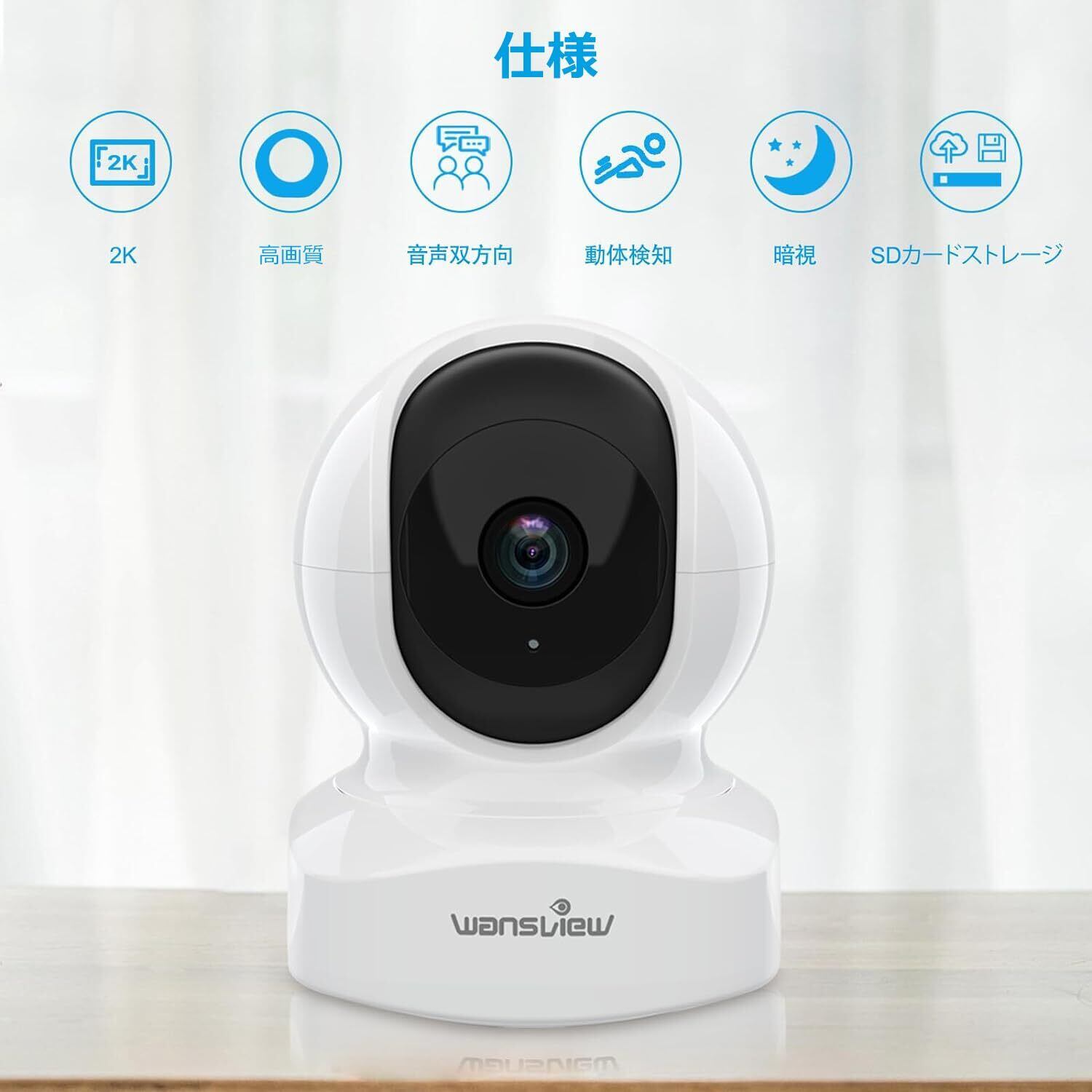 Wansview Q5ネットワークカメラ 300万画素 2Kベイビーモニター ワイヤレス屋内防犯 360度 ベビー 老人 ペット見守り 2.4GWi-Fi対応Wi-Fiカメラ 動体検知 双方向音声 暗視撮影 録画可能 アプリ無料 白