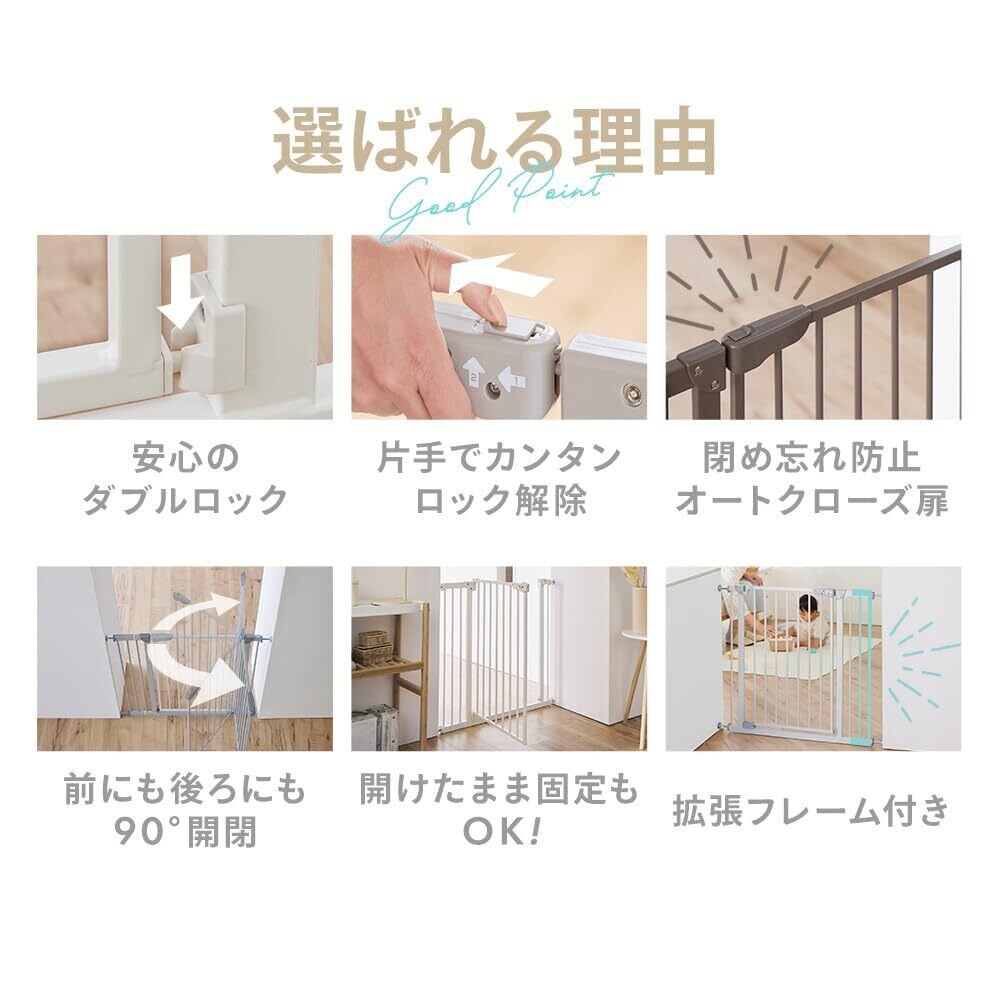 アイリスプラザ ベビーゲート 高さ78cm 取付幅70-91cm ハイタイプ 拡張可能 安心安全ダブルロック機能 突っ張りタイプ ペットゲート ホワイト
