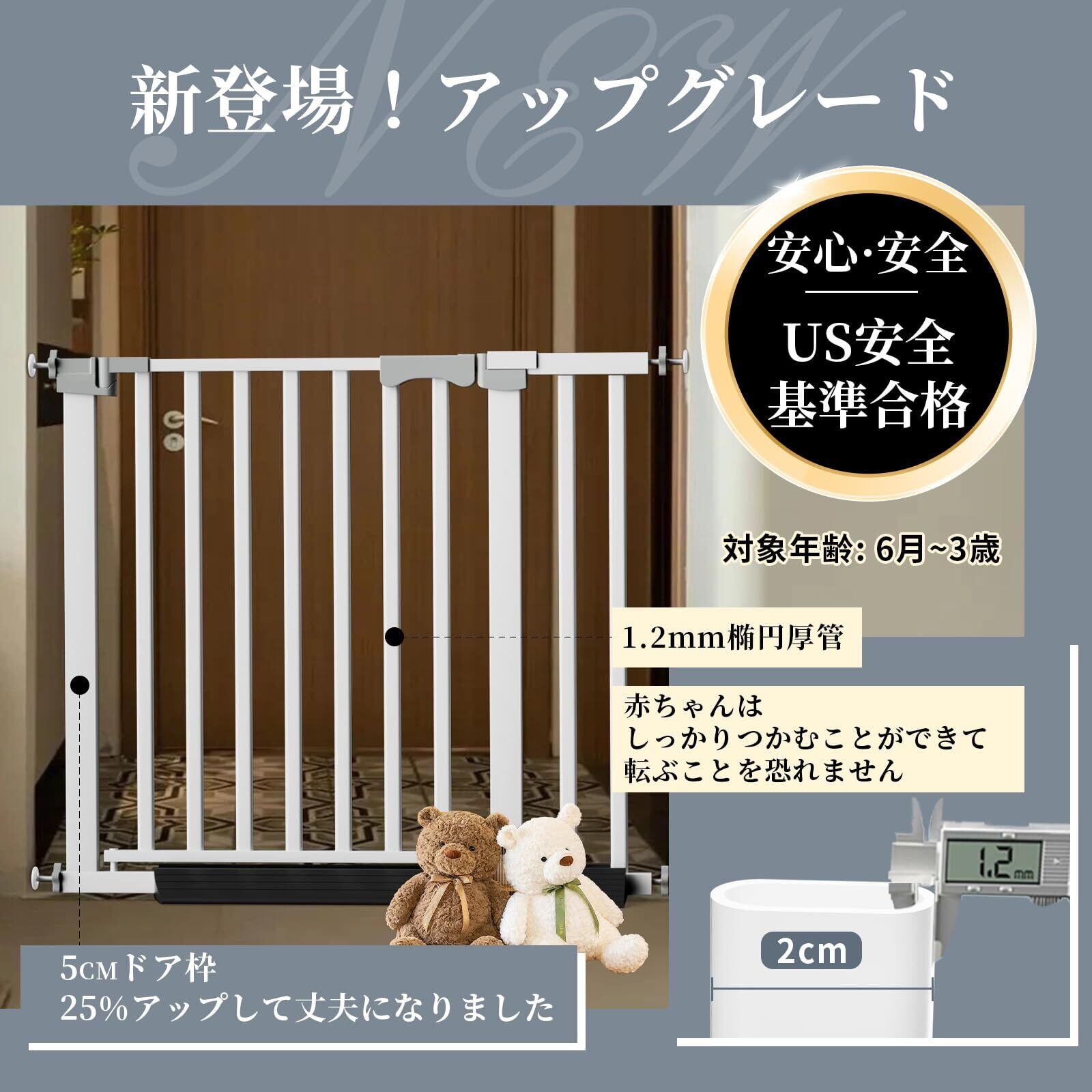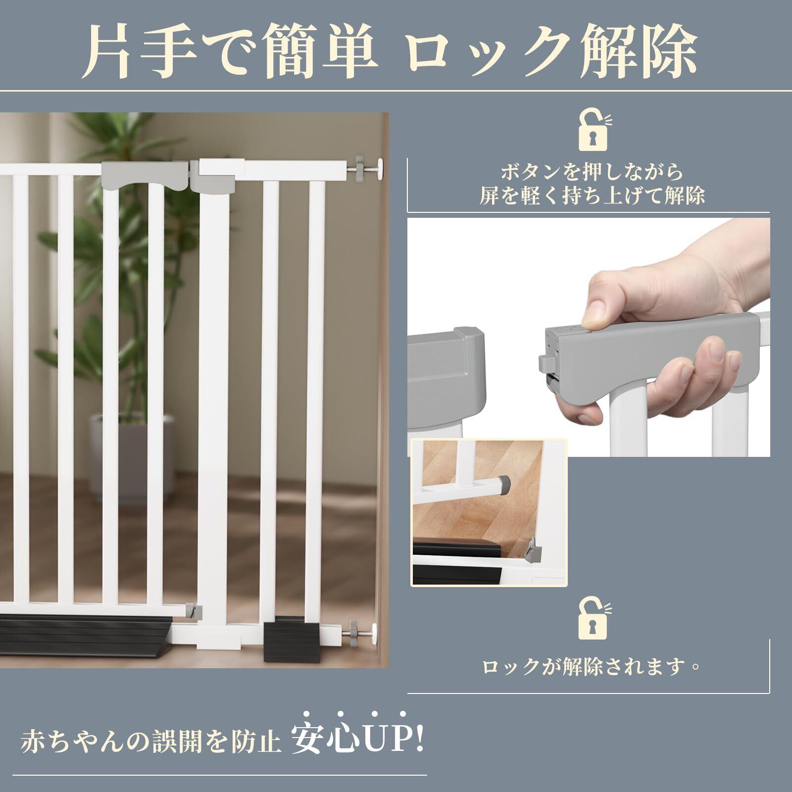 【安心の強化設計:2cm楕円バー&5.5cm密間隔】従来品よりバー幅2倍・間隔5.5cmに強化! 赤ちゃんの指やペットの足が挟まる心配なし。上下連動ダブルロックで大人は片手操作、子供の誤開けを完全ブロック。