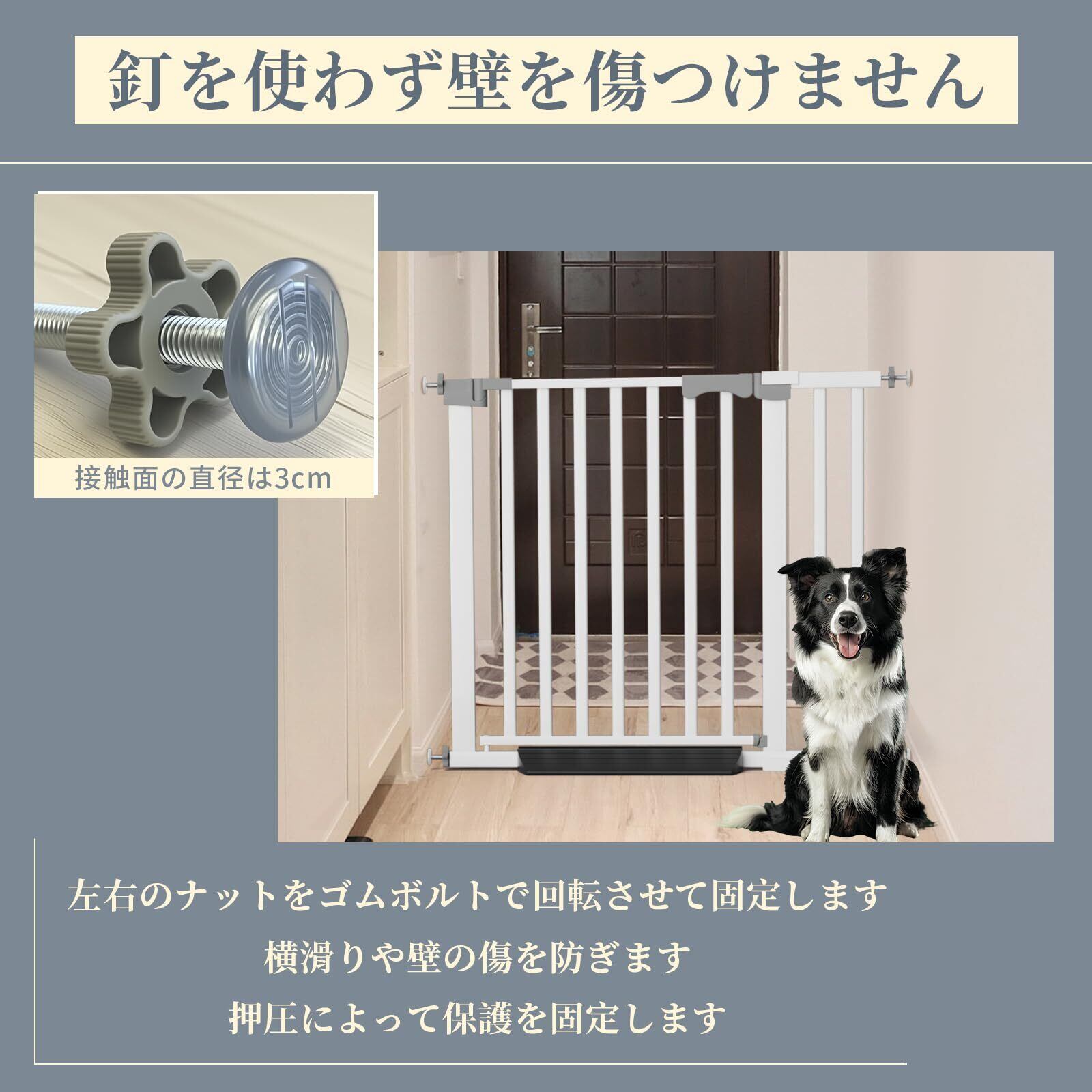 コブキBUJI【2025新改良】 ベビーゲート 突っ張り式 ペットゲート ハイタイプ 幅69~153cm 高76cm 幅広 置くだけ 厚くスチールゲートドア付き 階段 玄関 台所 犬猫脱走防止 安心安全ダプルロック機能 前後90°自動開閉 防蹴パッド付き イノベーション2cm楕円管