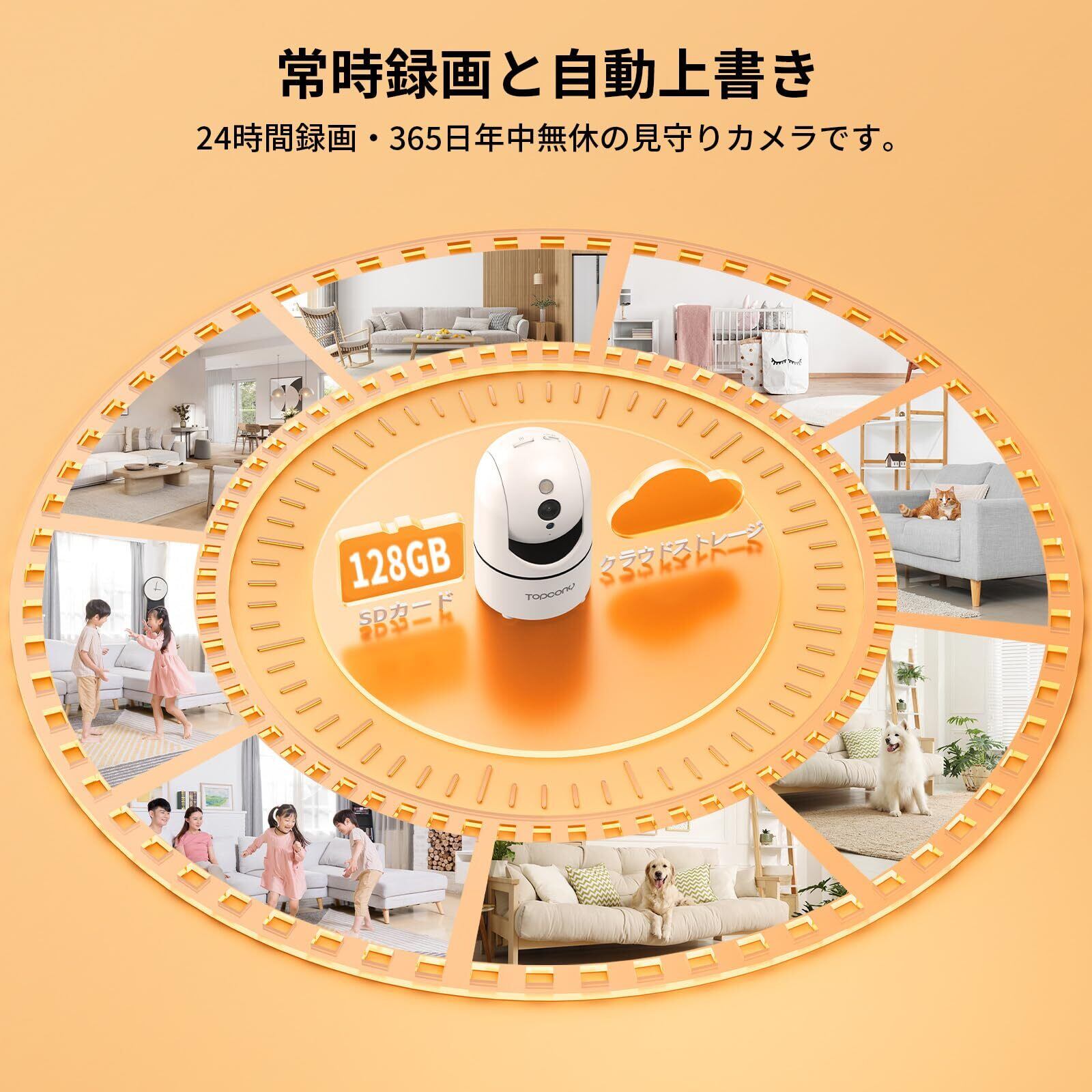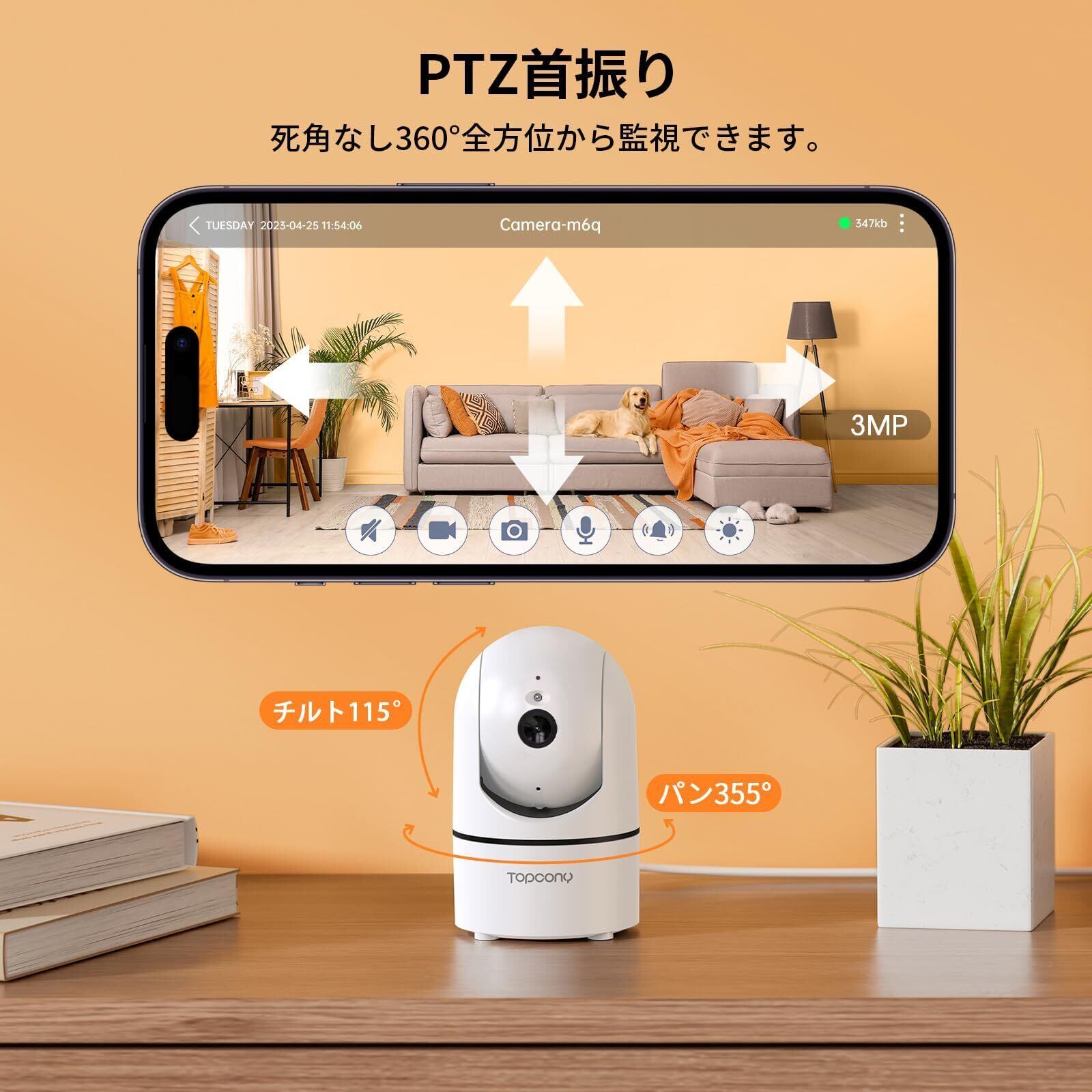 【Bluetoothペアリング・2.4Gと5GWiFi対応】ペットカメラ 300万画素 Topcony 2K画質 自動追尾 24時間録画 iPhone/Android スマホで見れる 遠隔操作 パン355° チルト115° PTZ首振り 赤外線暗視 双方向会話 Alexa連携 カード/クラウド 人体/音声/動体検知 警報通知 家族共有 猫犬 赤ちゃん 年寄り介護 留守番 見守り 室内防犯 安全認証