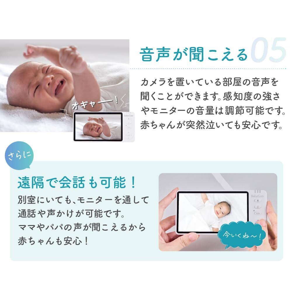 【双方向会話機能でパパもママも安心】 モニターを通じて赤ちゃんにリアルタイムで声をかけられるので、離れていても安心です。すぐに駆けつけられない時でも、赤ちゃんを安心させることができます。