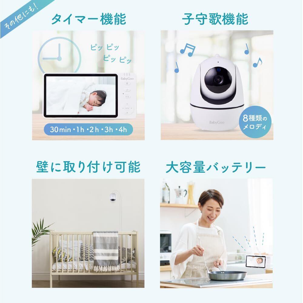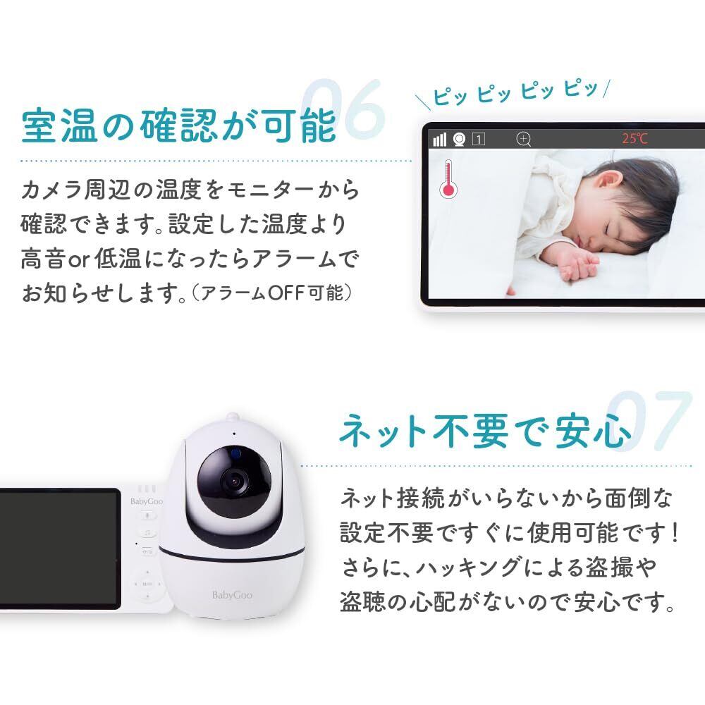 BabyGoo ベビーモニター 見守りカメラ モニター付き wifi不要 5インチ大画面 ハイビジョン画質 ペットカメラ 出産祝い ギフト プレゼント 赤ちゃん