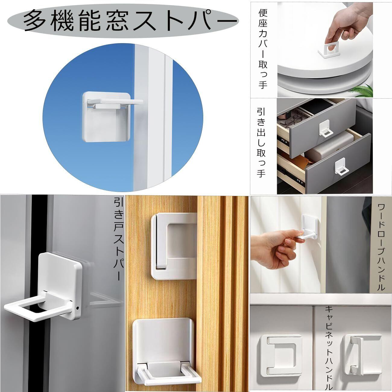 【特価セール】跡の残らなく剥がせ 引き戸 ストッパー 窓 ロック 無味な ドアストッパー 穴あけ不要 窓 ストッパー 転落防止 防犯対策 ベビーガード 子供 赤ちゃん 猫 多機能 設置解除簡単 引き戸ロック (四角 2個入り) ホワイト