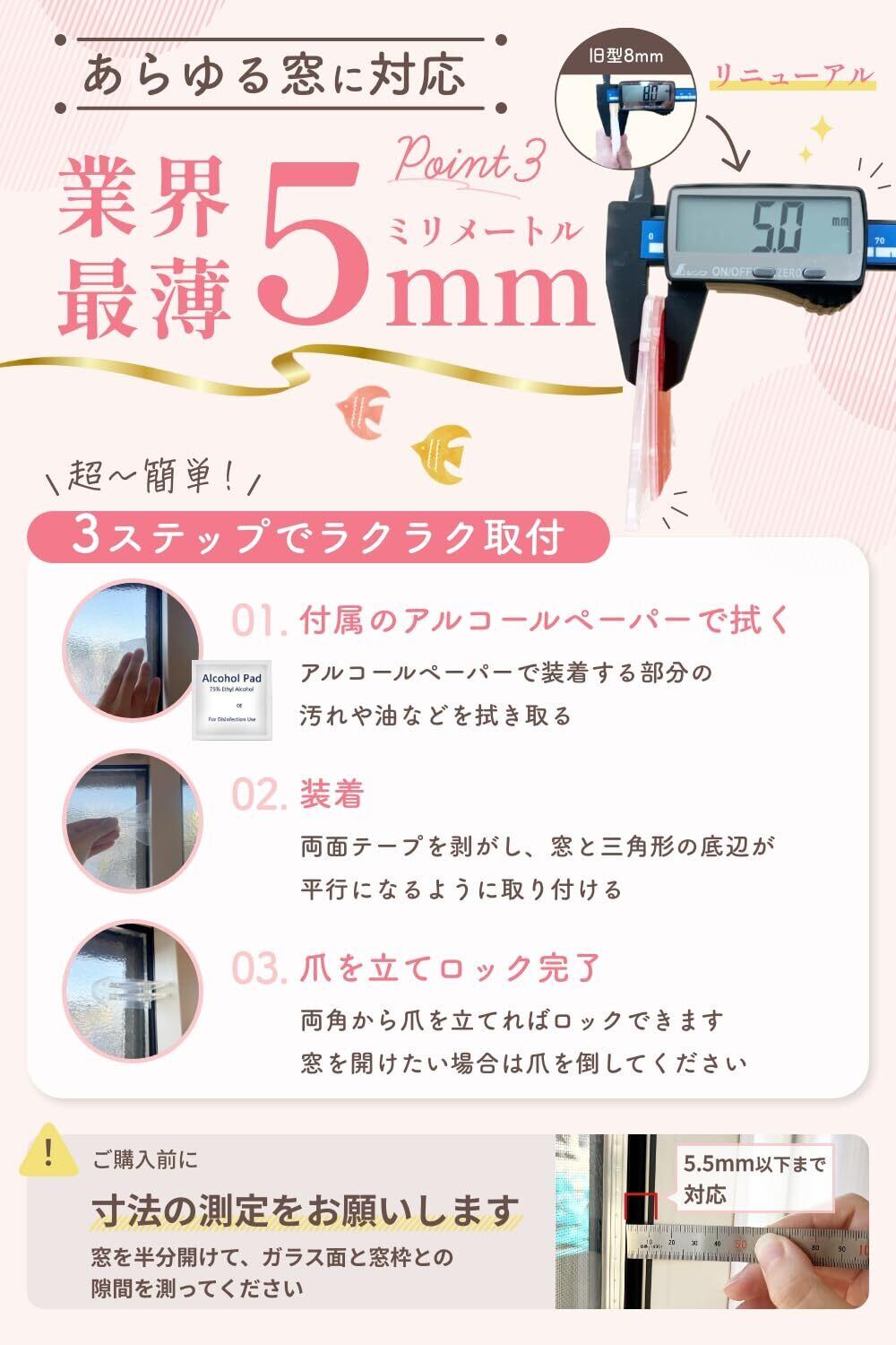 【厚さたったの「5mm」】様々な窓をロックできるよう強度を保ちながら、厚さを5mmにしました。※商品ご購入前にガラス面と窓枠との隙間の測定を必ず行ってください。
