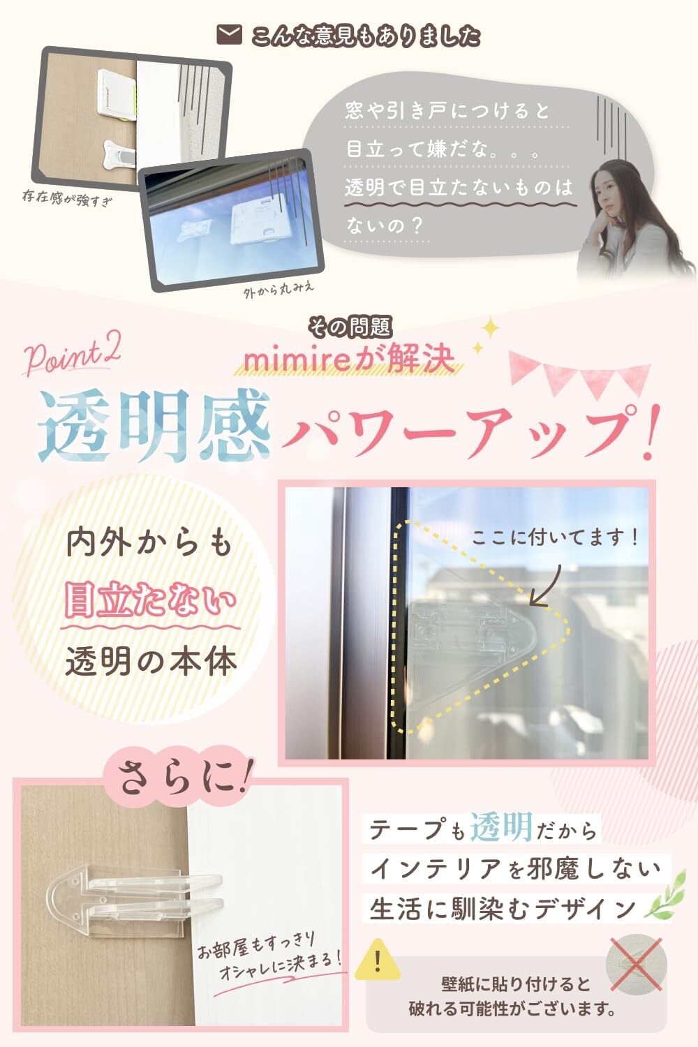 【保育士推薦×日本メーカー企画】窓ロック 引き戸ストッパー プラスチック [インテリアに馴染みやすい全透明&最薄モデル] mimire