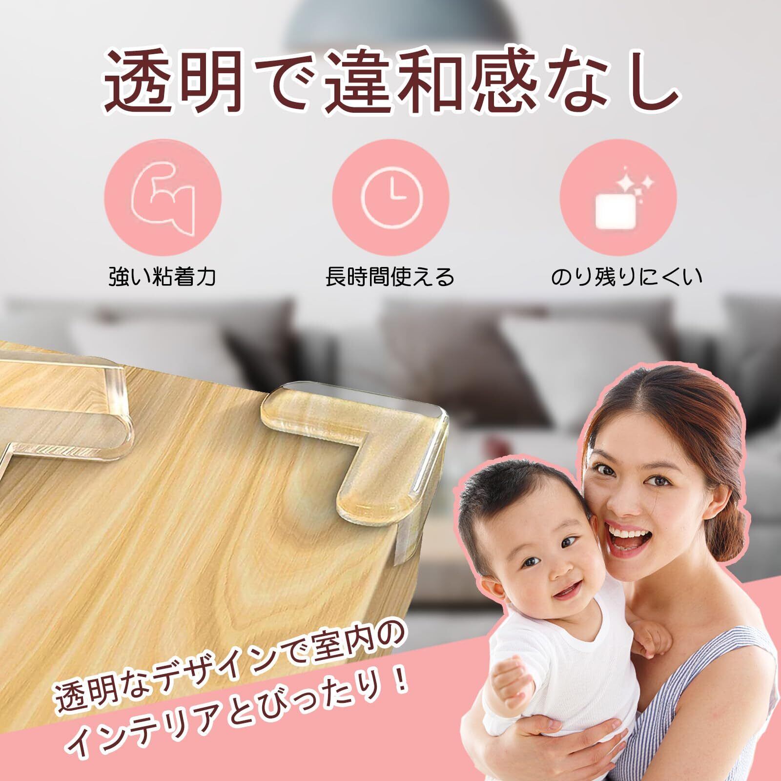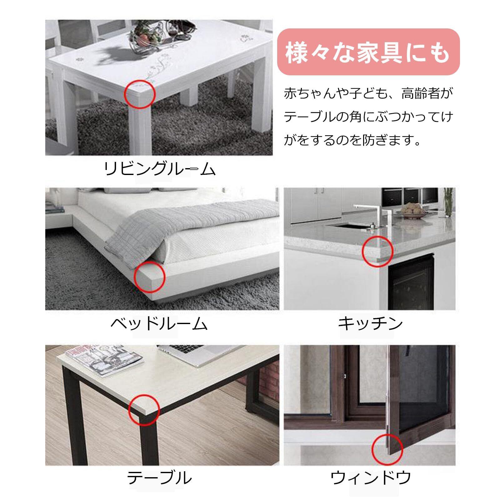 【様々な家具にも】 固体、木材、ガラス(プラスチック、鋼、セラミック)などのさまざまな表面に適しています。テーブルやベッドなどの家具やキッチン、オフィス、ベッド、テレビボード、本棚、キャビネット、ガレージなどの家具の角等様々な場所で実際にお使い頂いております。赤ちゃんや子ども、高齢者がテーブルの角にぶつかってけがをするのを防ぎます。ご家庭で、幼稚園で、お子様のご来店が多い商業施設で大活躍します。