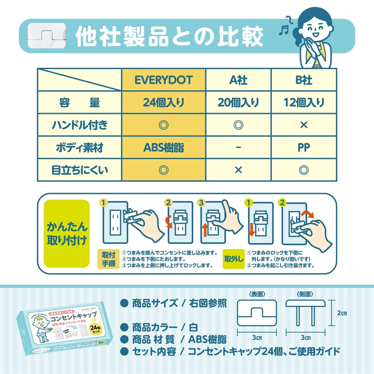 コンセントカバー コンセントキャップ コンセントガード ベビーガード 【24個セット】 抜けにくい ガッチリロック機構 【現役保育士監修】 感電防止 漏電 火災防止 大掃除 セーフティー トラッキング防止 EVERYDOT