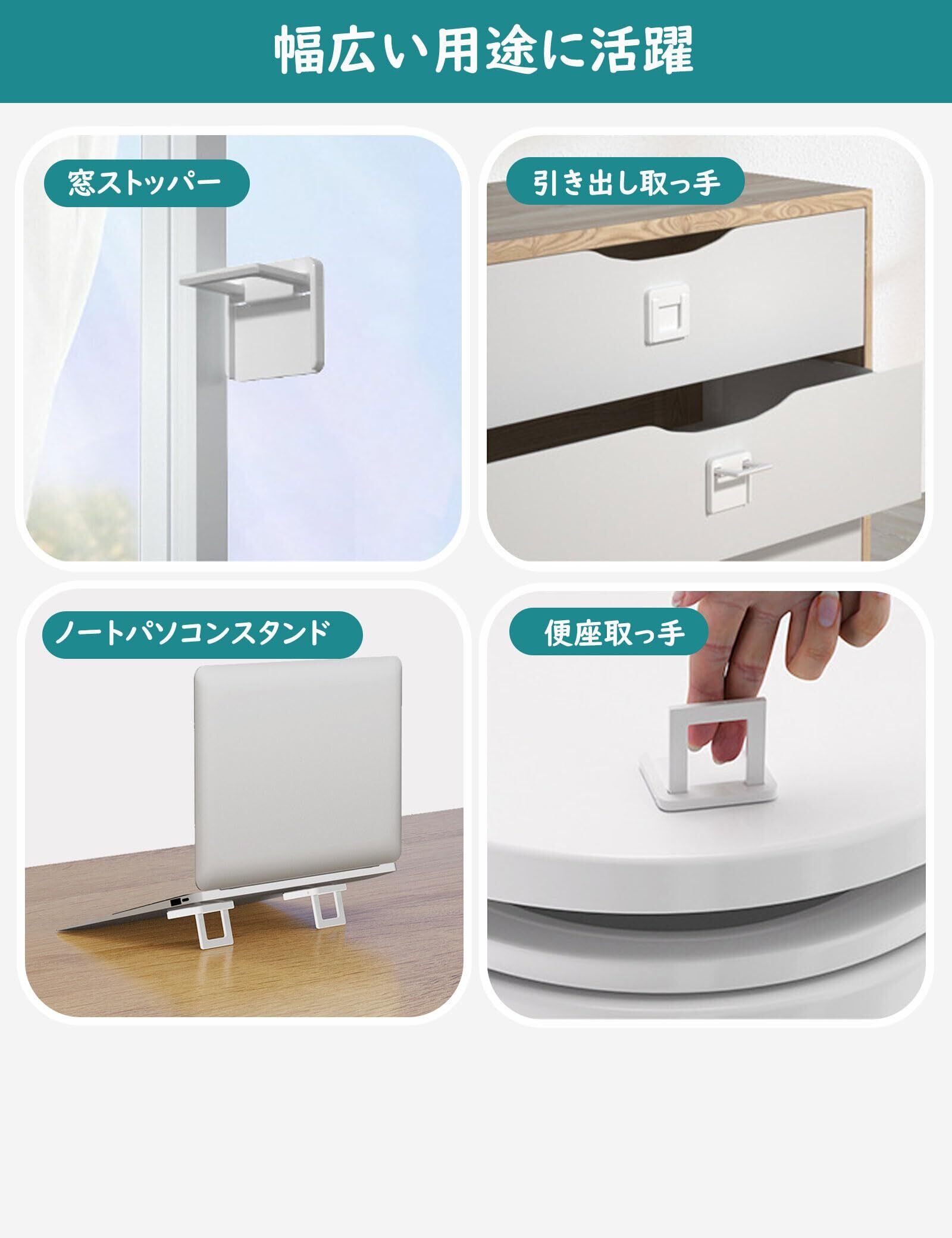 窓ロックとしてだけでなく、引き出し取手、便座取っ手、ノートパソコンスタンドとしても使用できます。
