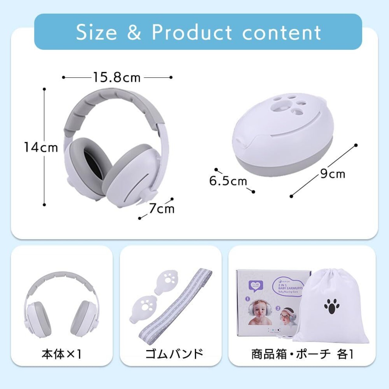 [enne.] 助産師推奨 イヤーマフ 防音 耳当てプロテクター 遮音値27db キッズ 赤ちゃん 子供 子供用 睡眠 聴覚過敏 自閉症 軽量 2WAY 遮音 ヘッドバンド 収納ポーチ付き