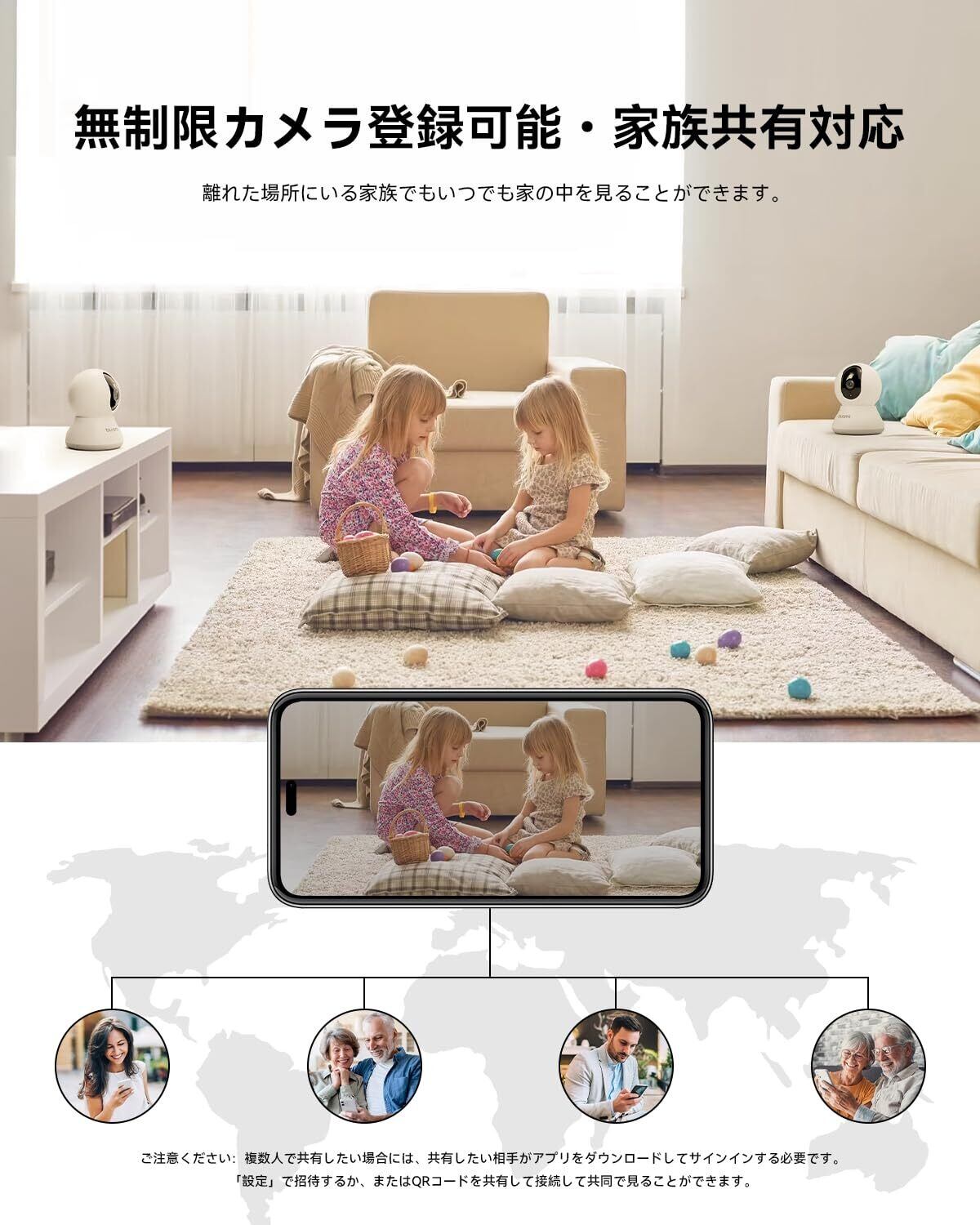 ご注意ください:❶ 対応システム:本製品はiOS 10以上、Android 5以上、Alexa/Google Assistant/IFTTTにも対応しており、幅広いデバイスで使用可能です。❷ ぜひ付属の5V 1Aの電源アダプターをご使用ください。❸クラウドストレージ機能は有料サービスとなります。無料でご利用を希望される場合は、SDカードを挿入して録画いただくことをおすすめします。