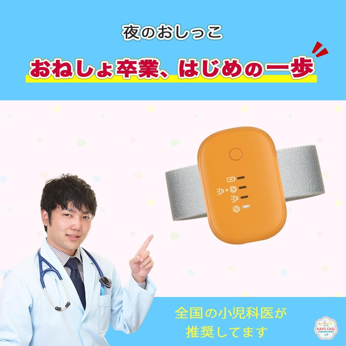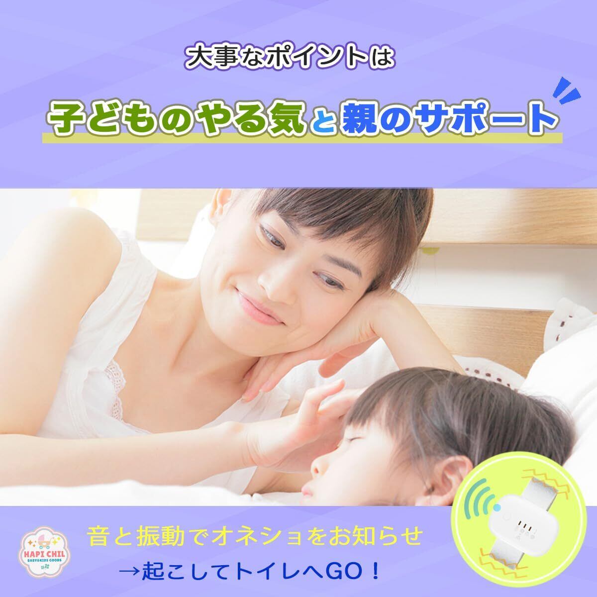【小児科医が推奨】HapiChil おねしょ卒業 おねしょアラーム (アラーム&振動 USB充電) (ホワイト)