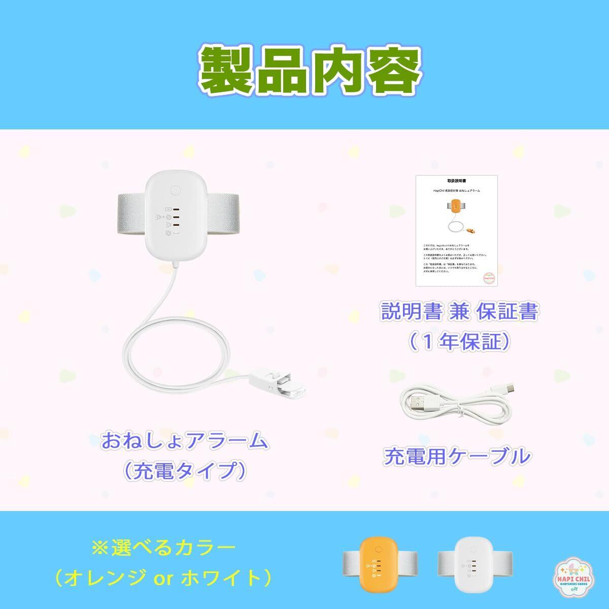 【HapiChilブランド】おしっこアラーム本体、充電ケーブル、説明書(兼 保証書)、1年のメーカー保証がつきます。HapiChilはベビー&キッズの専門店です。