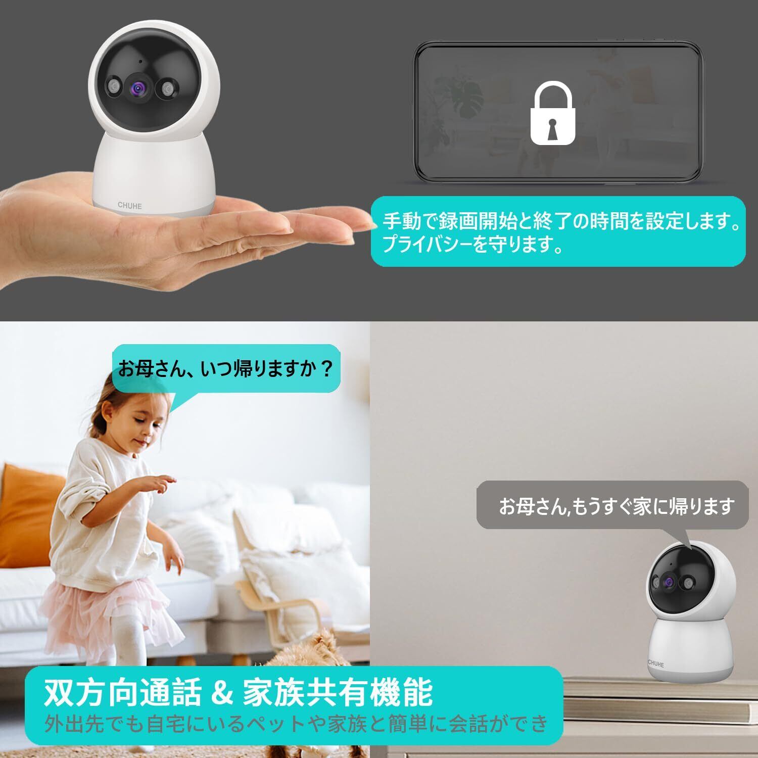 【新着商品】【400万画素・360°自動定期見回り】(見守りカメラ) ペットカメラ/ベビーモニター/ペット見守り/屋内カメラ/ネットワークカメラ/360°監視/人体検出/赤ちゃんの泣き声を通報しプッシュ通知/広角撮影/遠隔操作/双方向通話/家族共有/室内用ネットワークカメラ/玄関カメラCHUHE