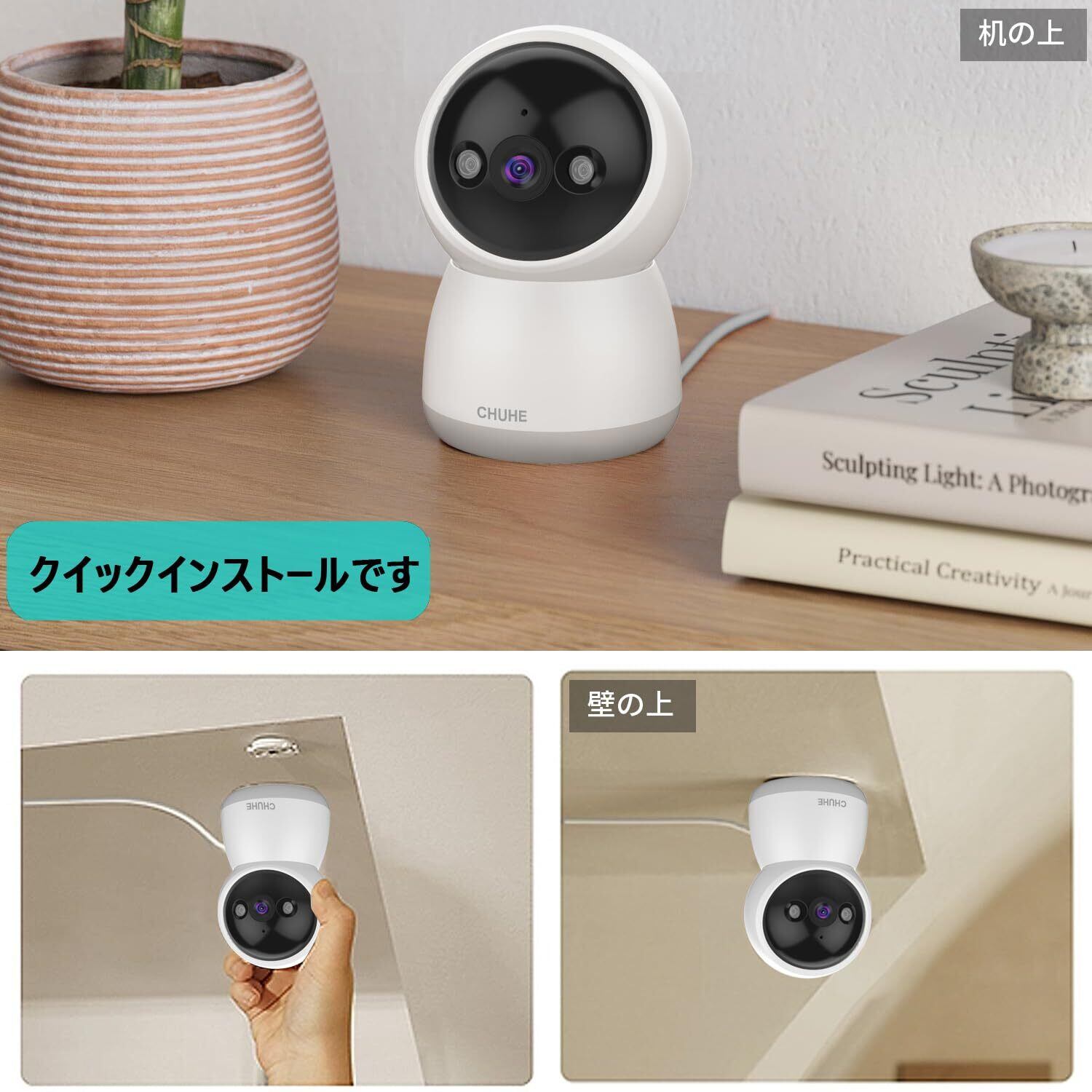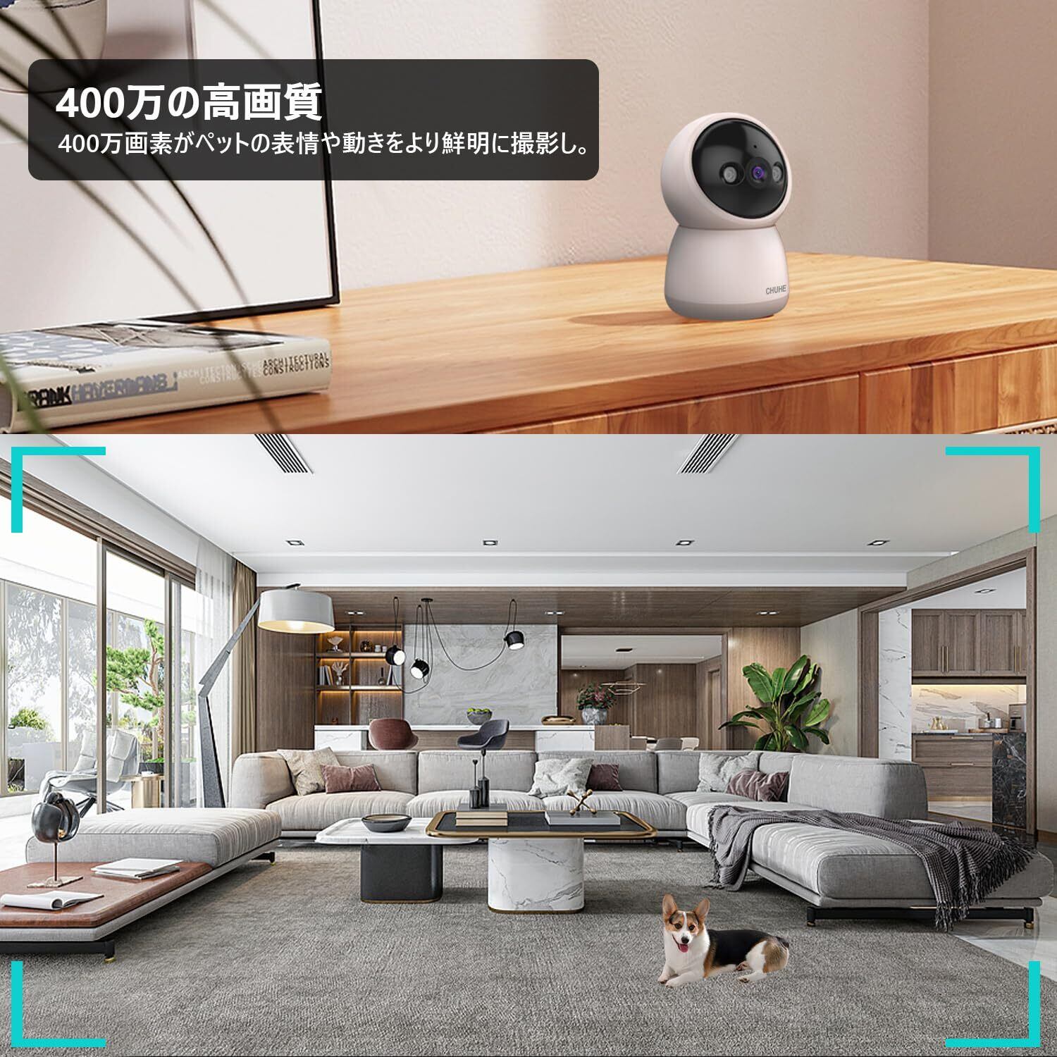 【400万画素・360°自動定期見回り】(見守りカメラ) ペットカメラ/ベビーモニター/ペット見守り/屋内カメラ/ネットワークカメラ/360°監視/人体検出/赤ちゃんの泣き声を通報しプッシュ通知/広角撮影/遠隔操作/双方向通話/家族共有/室内用ネットワークカメラ/玄関カメラCHUHE