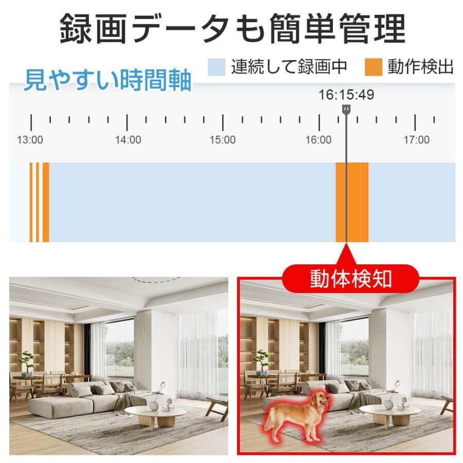 首振り機能(パンチルト)広い範囲まで見渡す 水平方向360度、垂直方向114度、首振り機能で隅々まで見渡せます。 ◆高画質 HD動画 1080pの高画質で細かな点まで撮影をします。