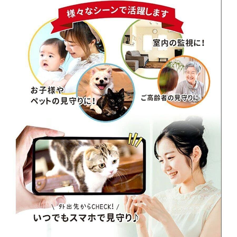 防犯カメラ Wi-Fiカメラ ペットカメラ 360°首振り 自動追跡 追尾 ベビーカメラ ベビーモニター 夜間撮影 相互音声会話 動作検知 スマホ通知 見守りカメラ 3年保証HC-WL8602CD-A