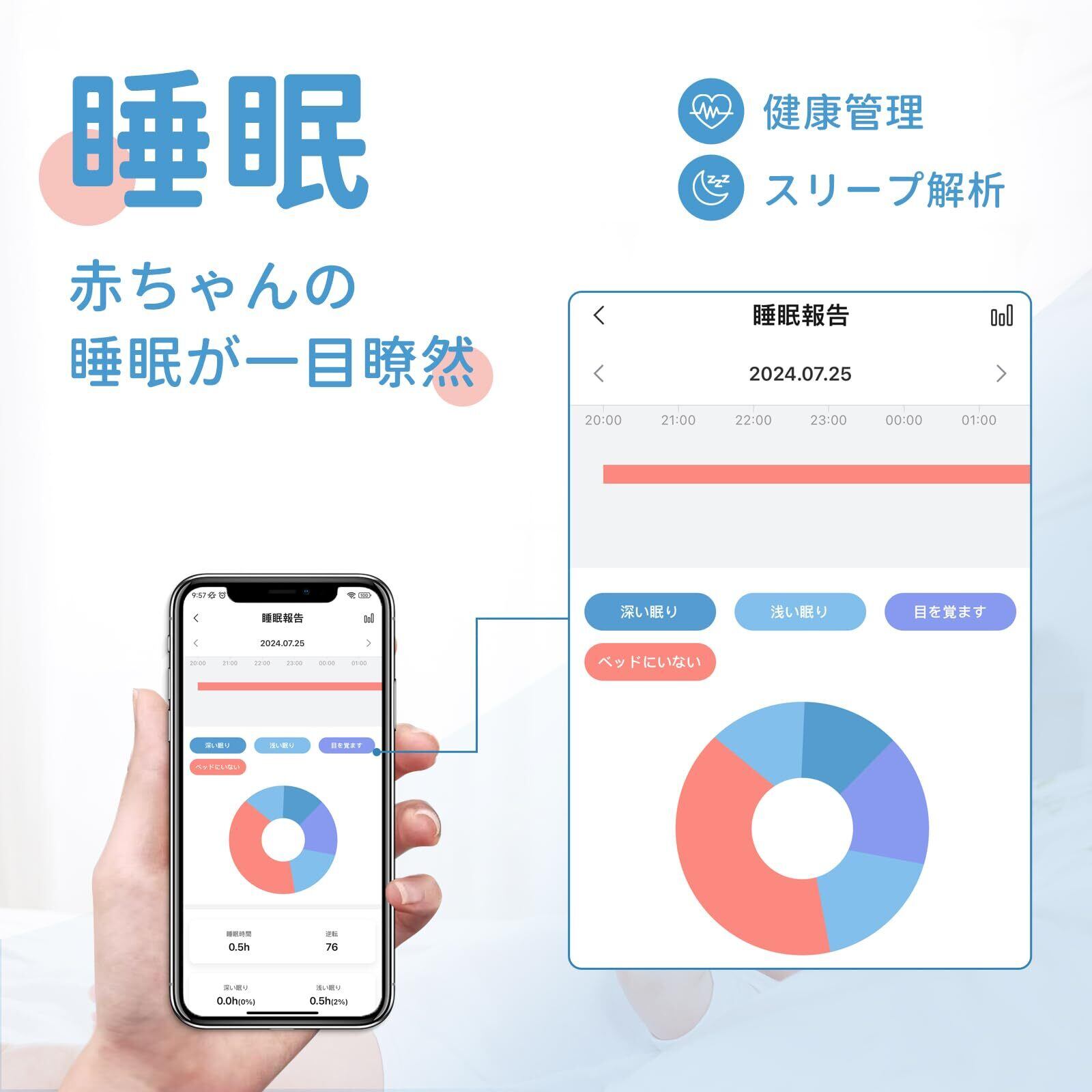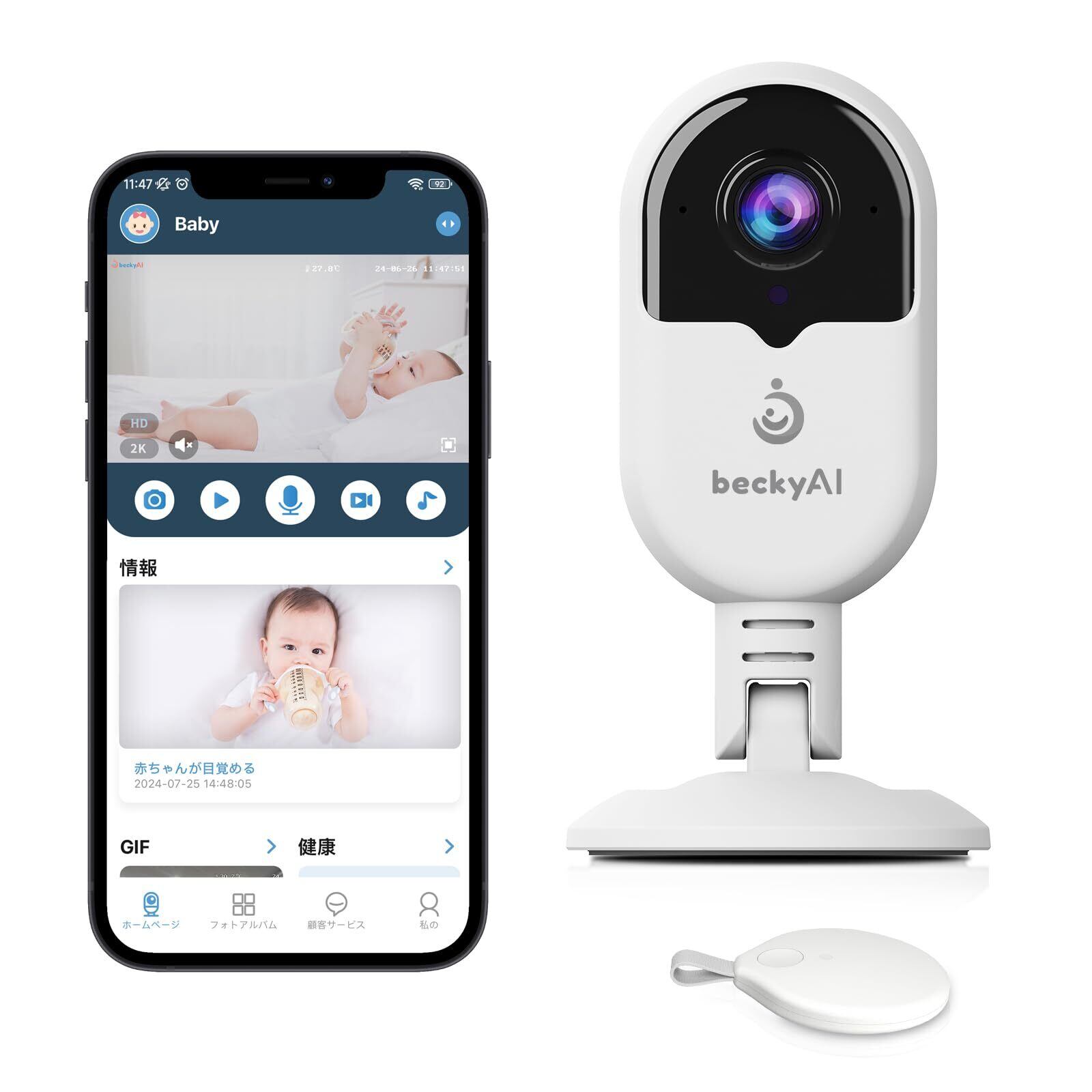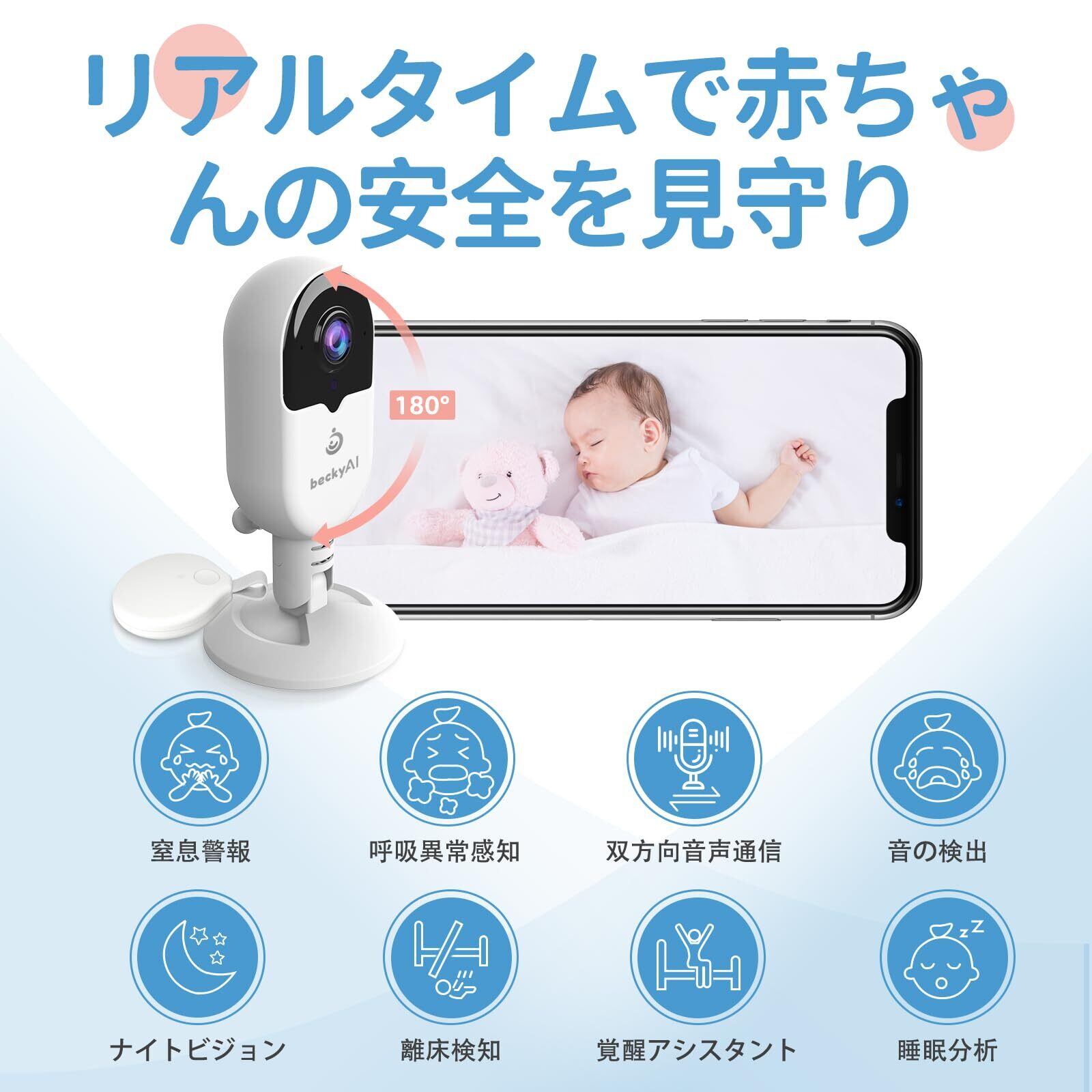 Becky Ai ベビーモニター 赤ちゃん睡眠カメラ 2K UHD 見守りカメラ 睡眠安全 窒息警報 睡眠分析 泣き声検知 呼吸異常感知 自動フォトキャプチャ 子守歌機能 双方向音声通信 スマホ連動