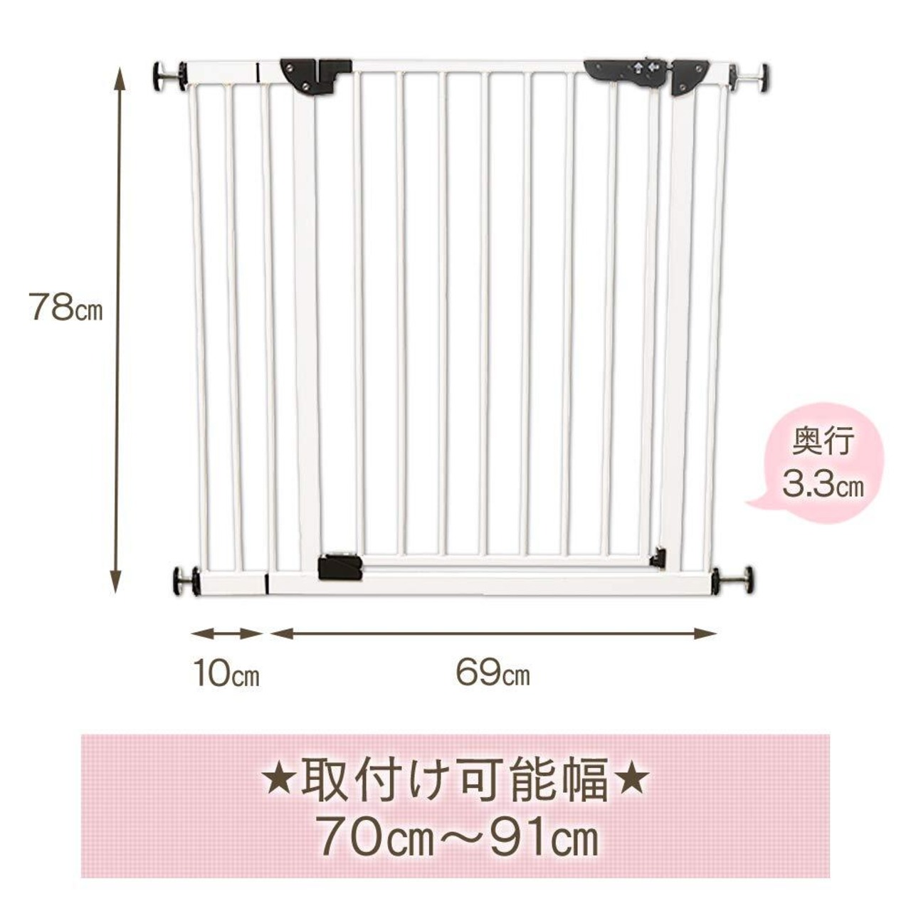 【2022最新】アイリスプラザ ペットゲート ベビーゲート スチールゲート ドア付き 突っ張りタイプ ホワイト 高さ78cm 設置幅70-91cm