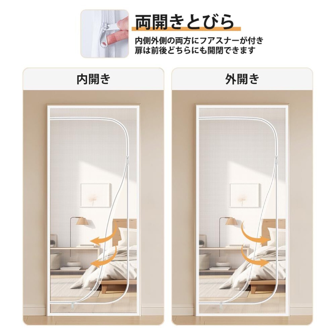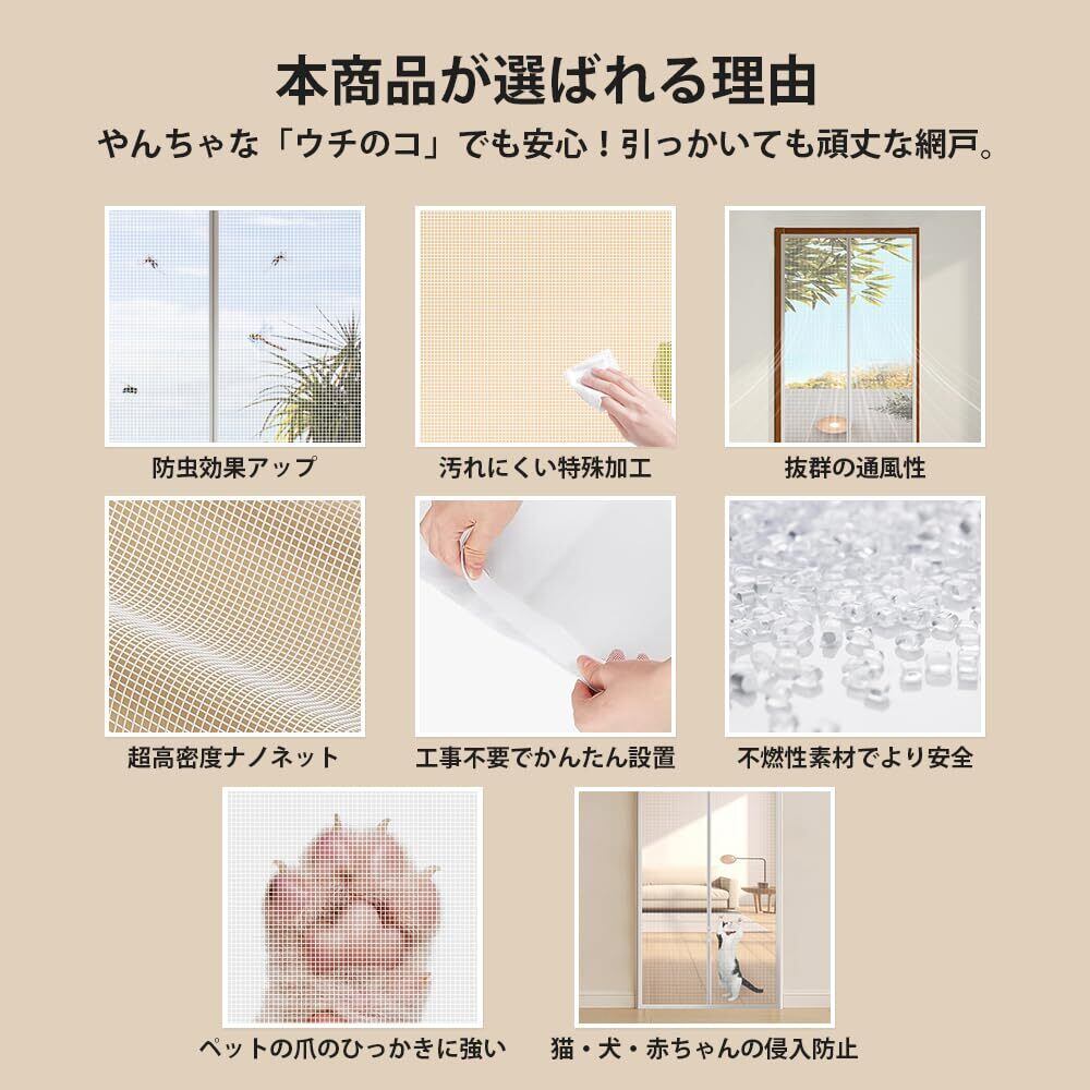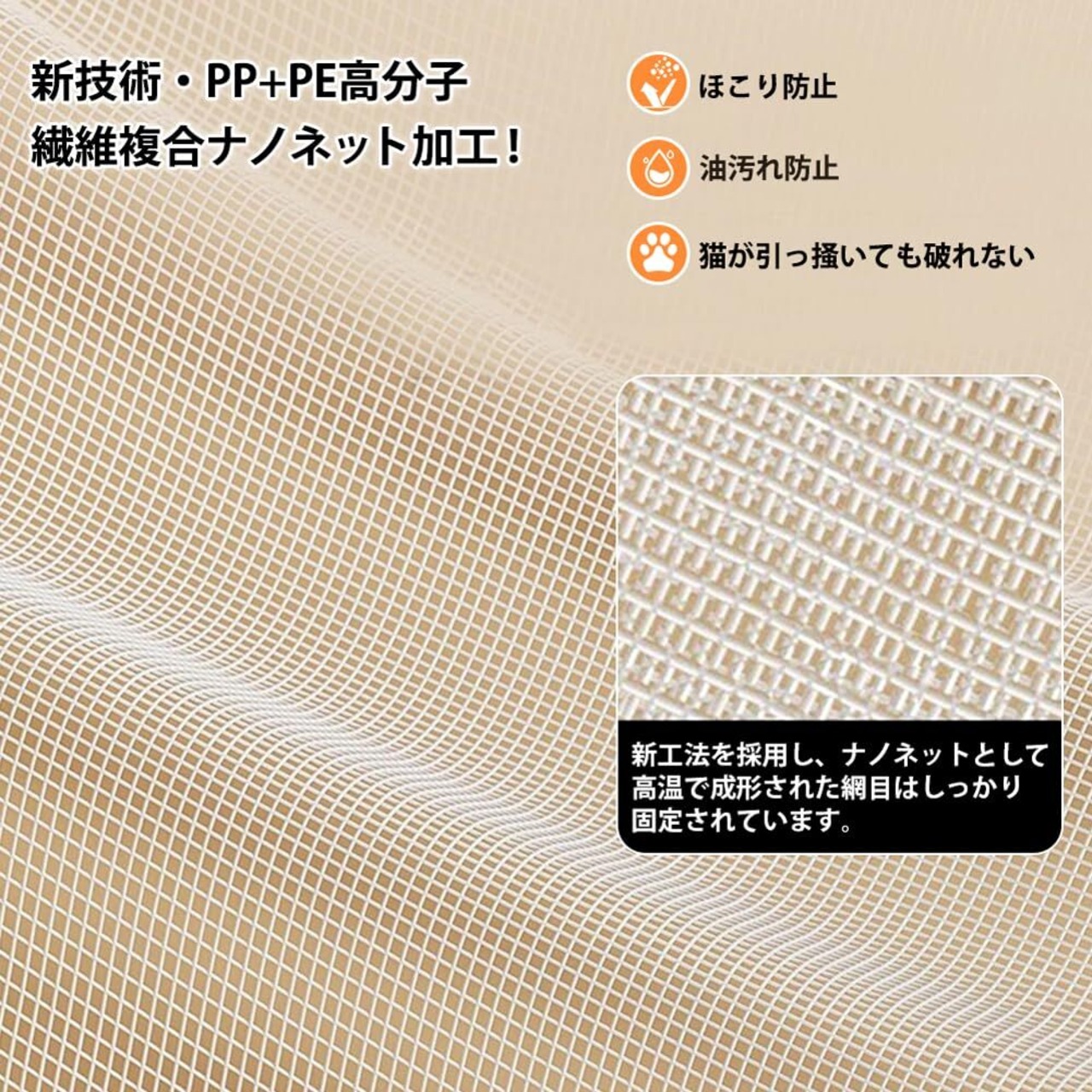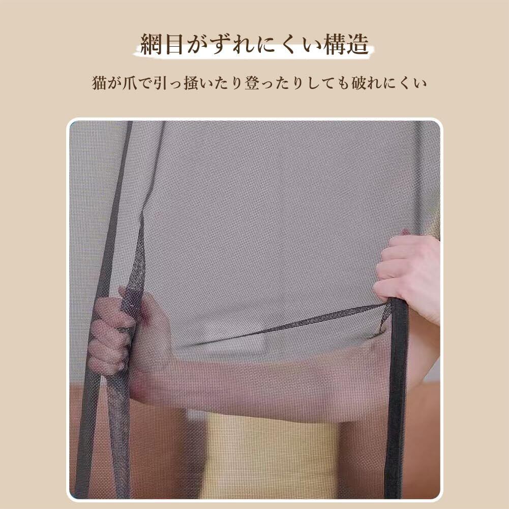 【高密度メッシュで虫の侵入を防止】 1mmの細かい網目設計により、猫や犬の脱走を防ぐだけでなく、蚊やハエなどの害虫の侵入を効果的にブロックします。室内の空気がしっかり通るため、ペットとご家族の快適な空間を保ちます。特に夏場に最適で、虫の侵入を防ぎながら清々しい空気を楽しめます。
