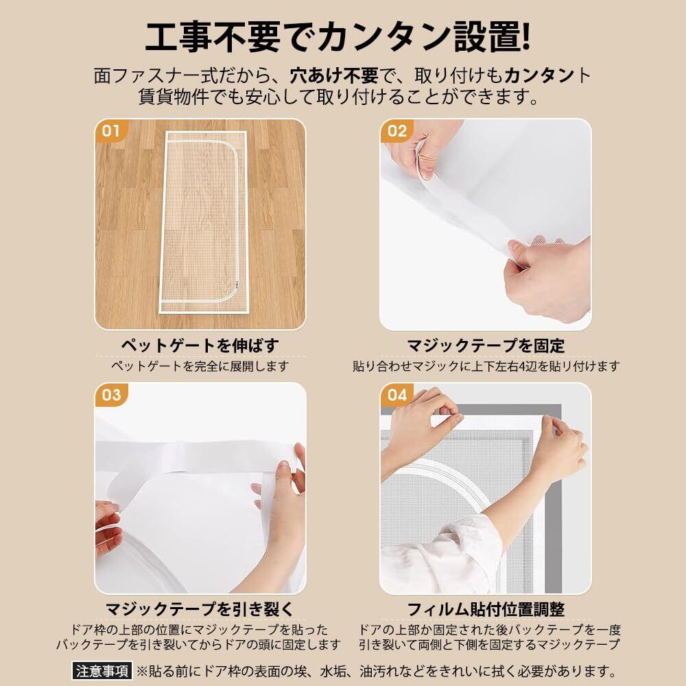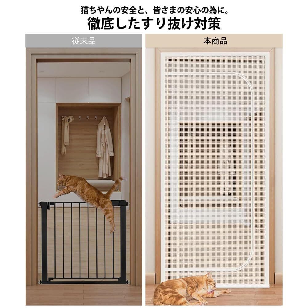 ペットゲート 猫 ゲート ペット ゲート 猫ゲート ハイタイプ 玄関 猫用 犬 犬用 ワイド ペットフェンス 侵入/飛び出し防止 玄関網戸 網戸 貼るだけ 玄関 ドア用 猫網 網戸カーテン 室内 階段 扉 メッシュ 網戸キット 虫よけネット 防虫ネット ナノメッシュ (I型, 85x210cm)