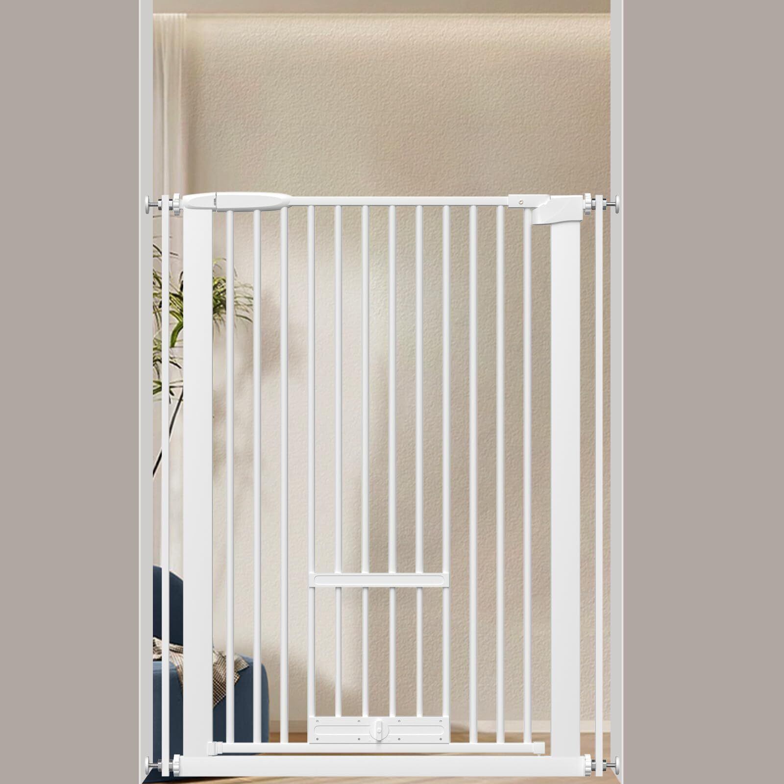 【新春セール】unumum ペットゲート ベビーゲート ドア付き 設置幅77-86cm 高さ103cm 間隔3.5cm 猫すり抜け防止 飛び越え防止ゲート 猫ドア付きゲート 過密フレーム付き 階段上 突っ張り式 赤ちゃん ゲート バリアフリー オートクローズ機能 扉開閉式 柵 拡張付き ホワイト