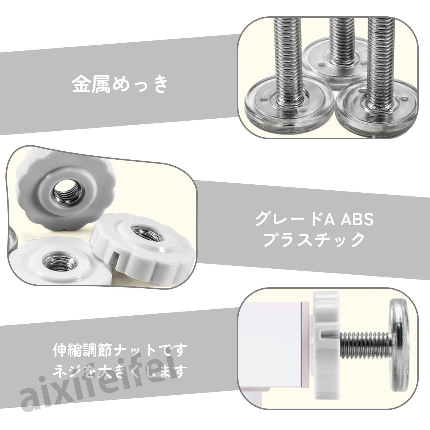 【取り付けが簡単】:工具は不要です。壁に傷をつけることなく、ナットを回すことで壁に対して逆力を発生させることができます。また、調節機能が付いているため、簡単にフィットするよう設計されています。