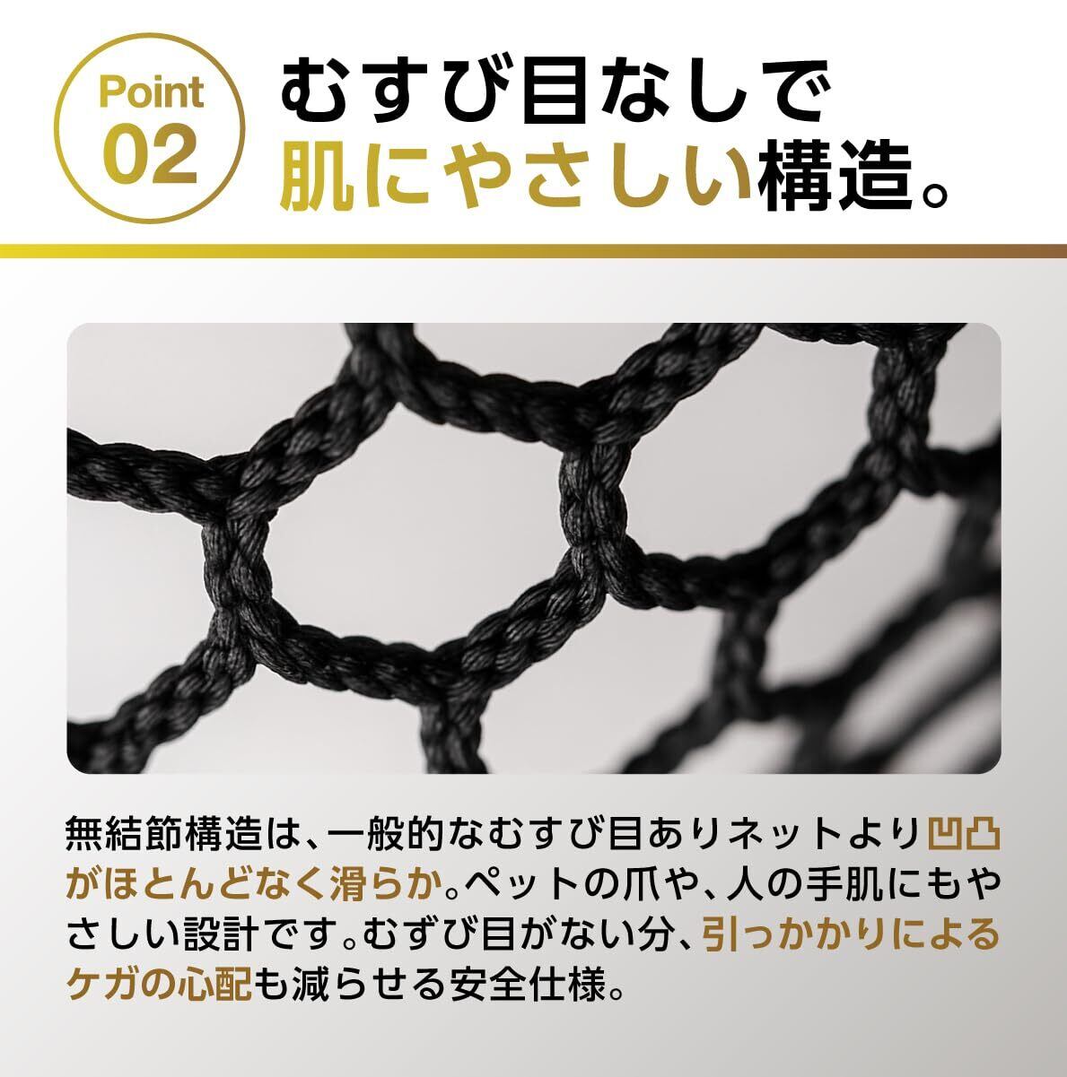 【装飾を変えることなく ~ 安全にネットを張れる】結束バンドをネット穴に通してベランダの柵や階段の手すりなどに固定するだけで、簡単にネットを張ることができます。ネジ穴やドリル穴を空ける必要がないので、お部屋の装飾を変えることなくネット張ることができます。素材の質感も柔らかいので、お肌に優しくお子様が触れても安心してお使い頂けます。
