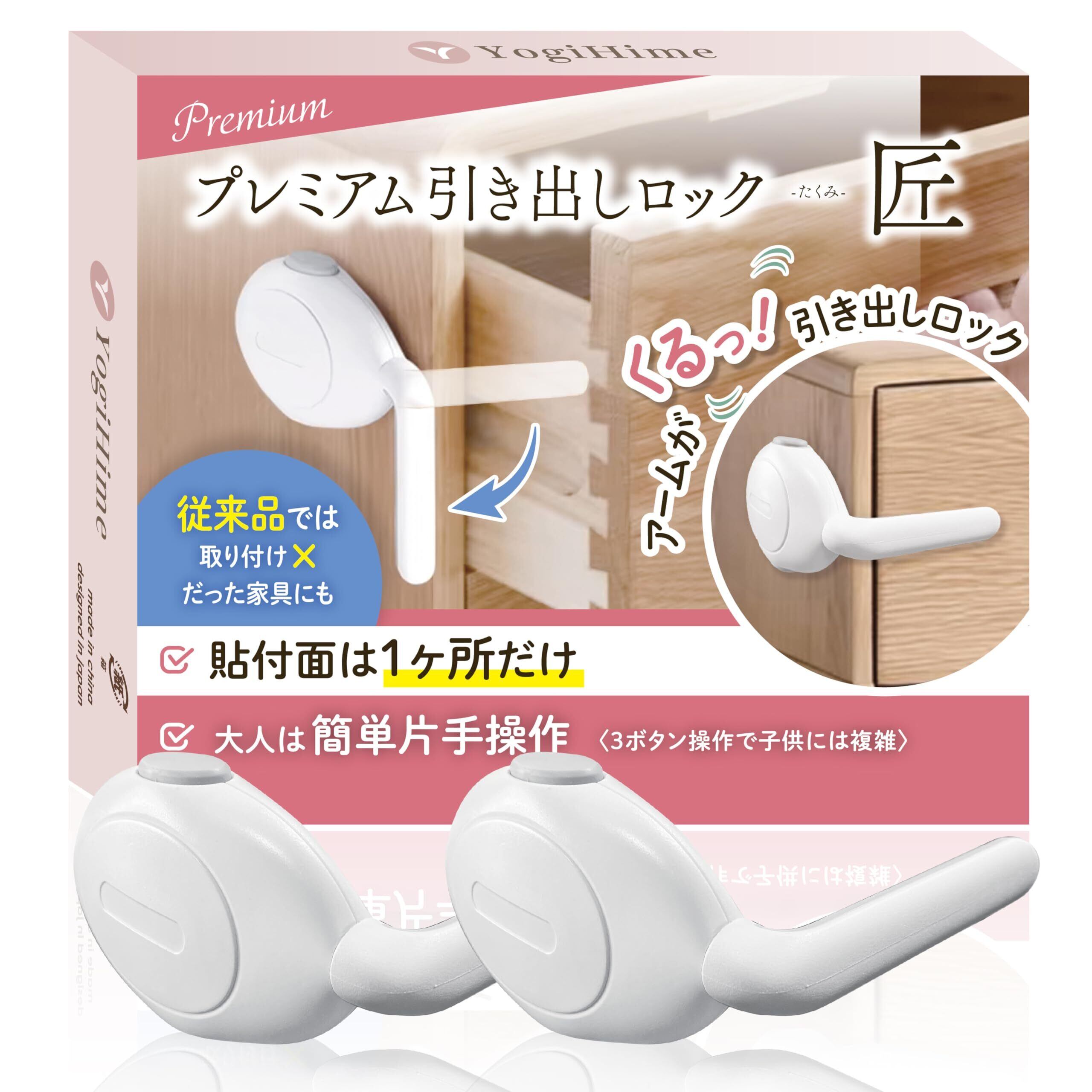 【新着商品】YogiHime プレミアム 引き出しロック 匠 『貼付面は1か所のみ』 『3ボタン操作で大人は簡単 子供には難しい』 『見た目スッキリ』 地震対策 日本のチャイルドロック専門店 (ホワイト2個)