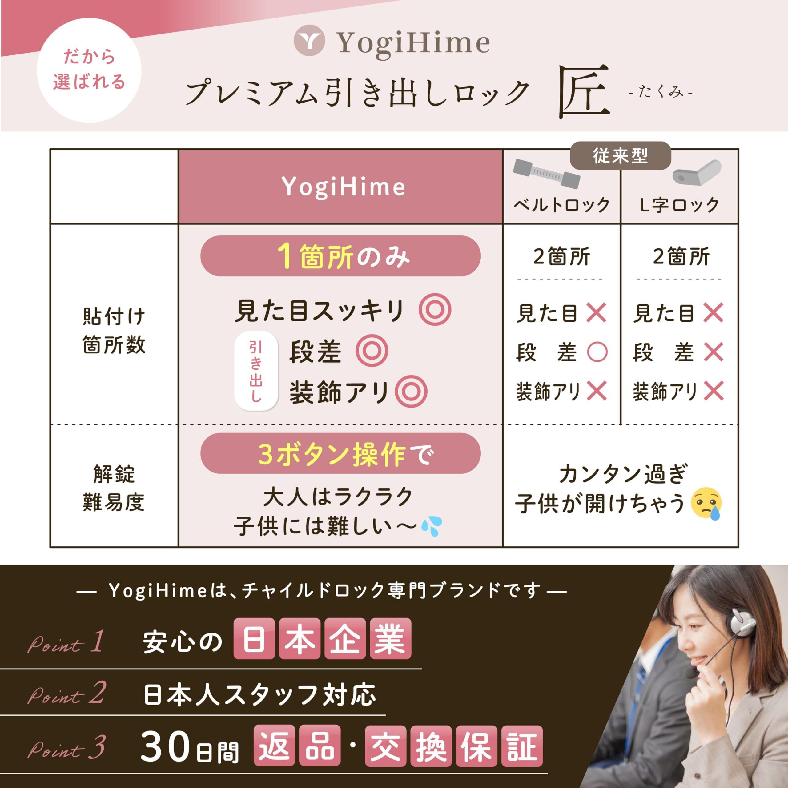 YogiHimeは、<安全性と機能美の両立>をモットーに製品開発をしています。安全確実なロック、 アンロック機能に加え、曲線が映える機能美をお楽しみください。