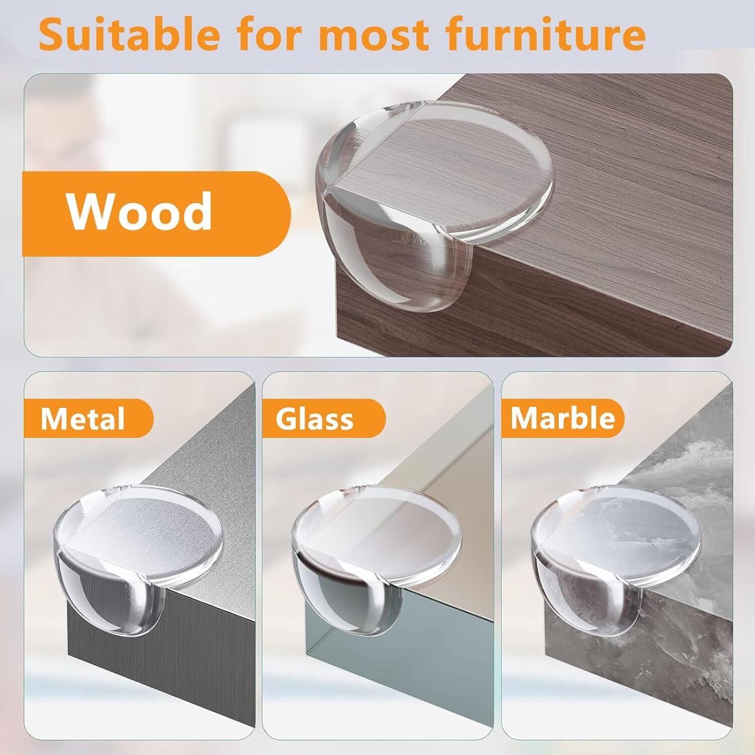 【適用範囲が広い】コーナークッションは丸い形状をしており、家具の角に取り付けることができます。 固体、木材、ガラス(プラスチック、鋼、セラミック)などのさまざまな表面に適しています。テーブルやベッドなどの家具やキッチン、オフィス、ベッド、テレビボード、本棚、キャビネット、ガレージなどの家具の角等様々な場所で実際にお使い頂いております。ご家庭で、幼稚園で、お子様のご来店が多い商業施設で大活躍します。