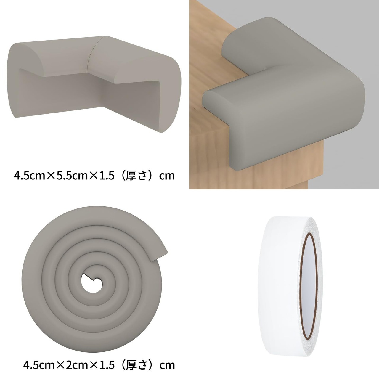 【商品仕様】:カラー:グレー、コーナーガード4枚、両面テープ1巻