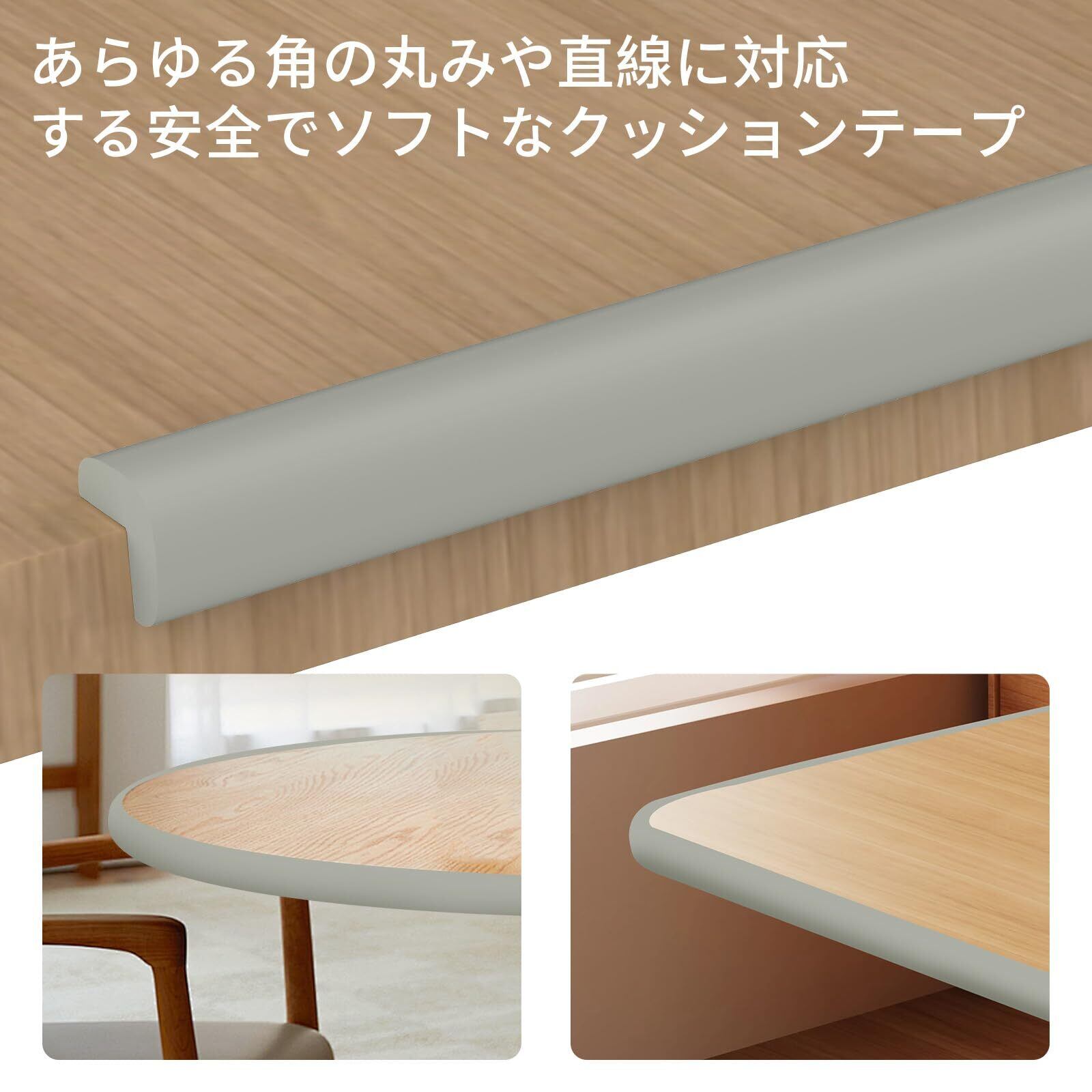 COUMENO コーナーパッド 長さ2メートル+ベビーコーナープロテクター4枚 家具のコーナー保護に 両面テープ付きベビーコーナープロテクター グレー