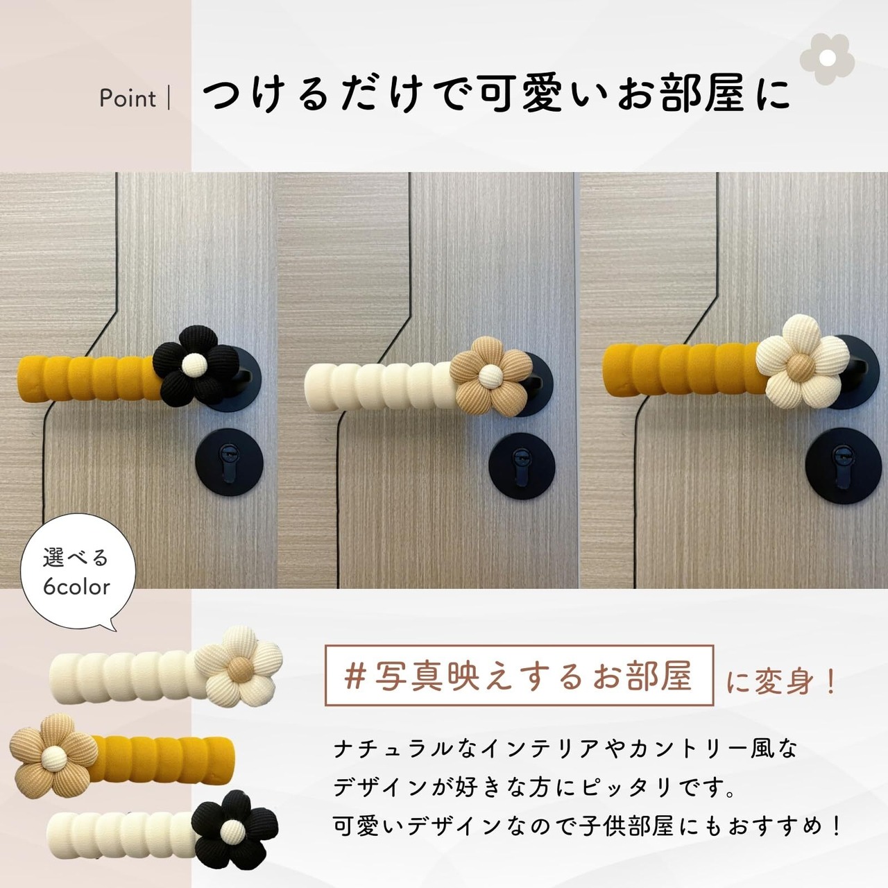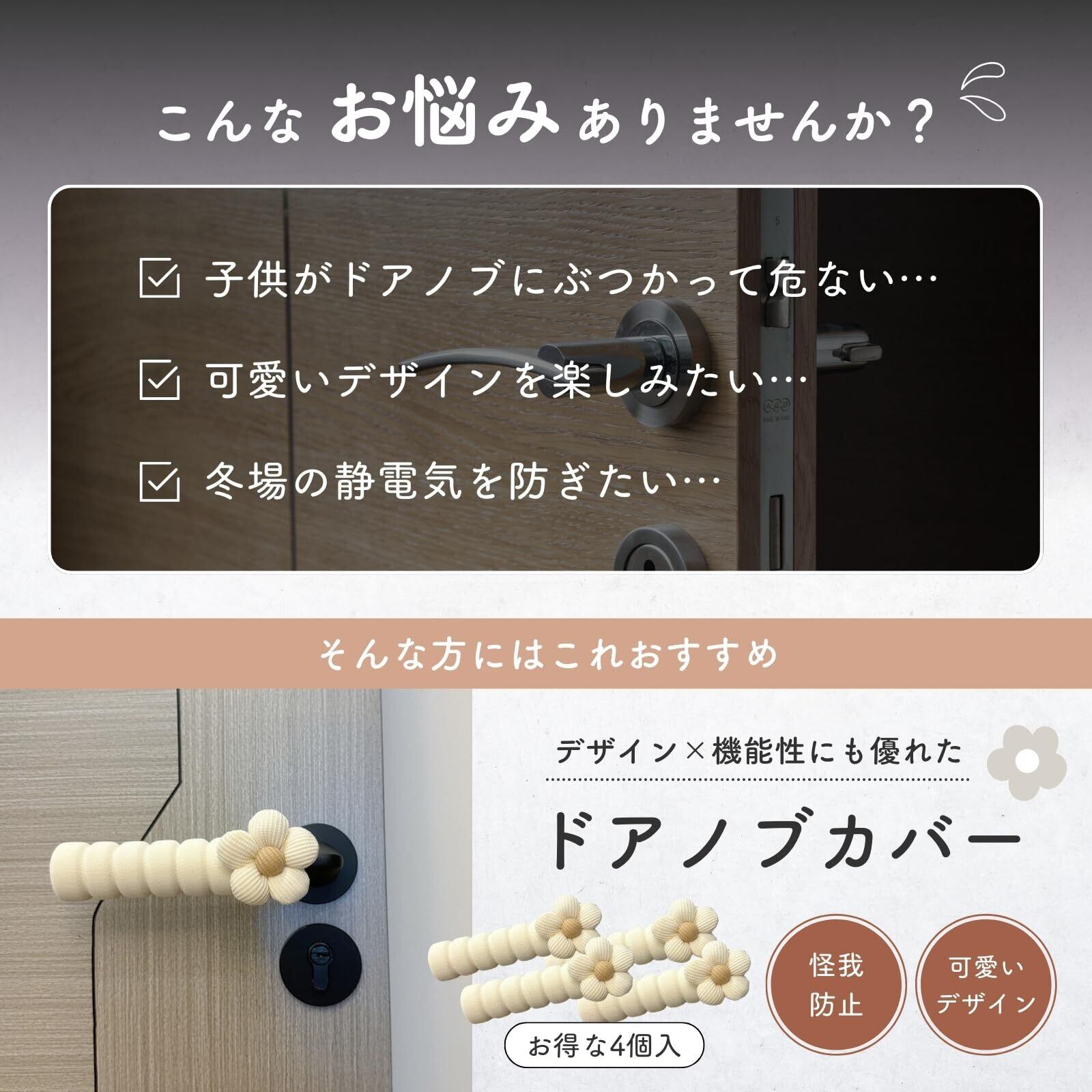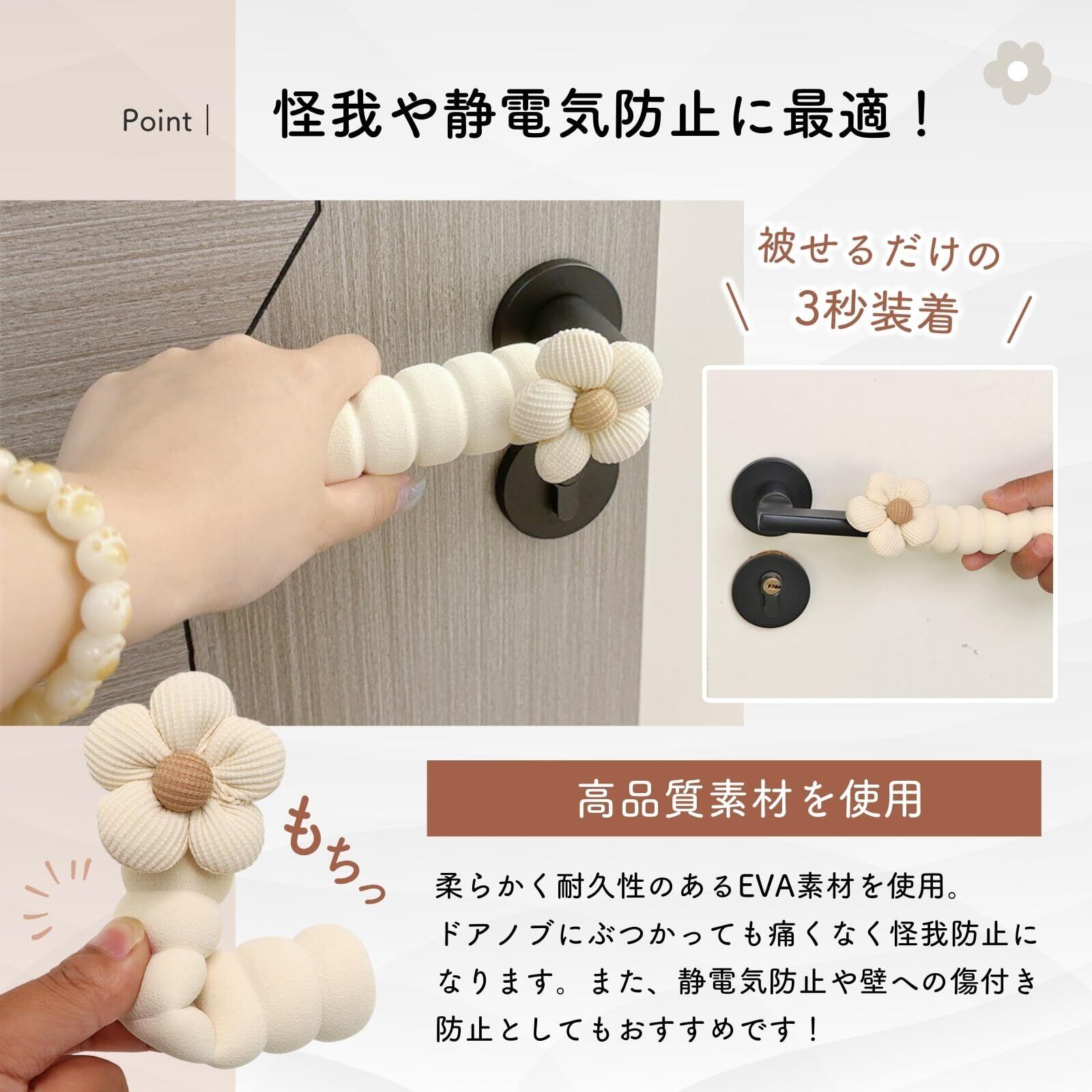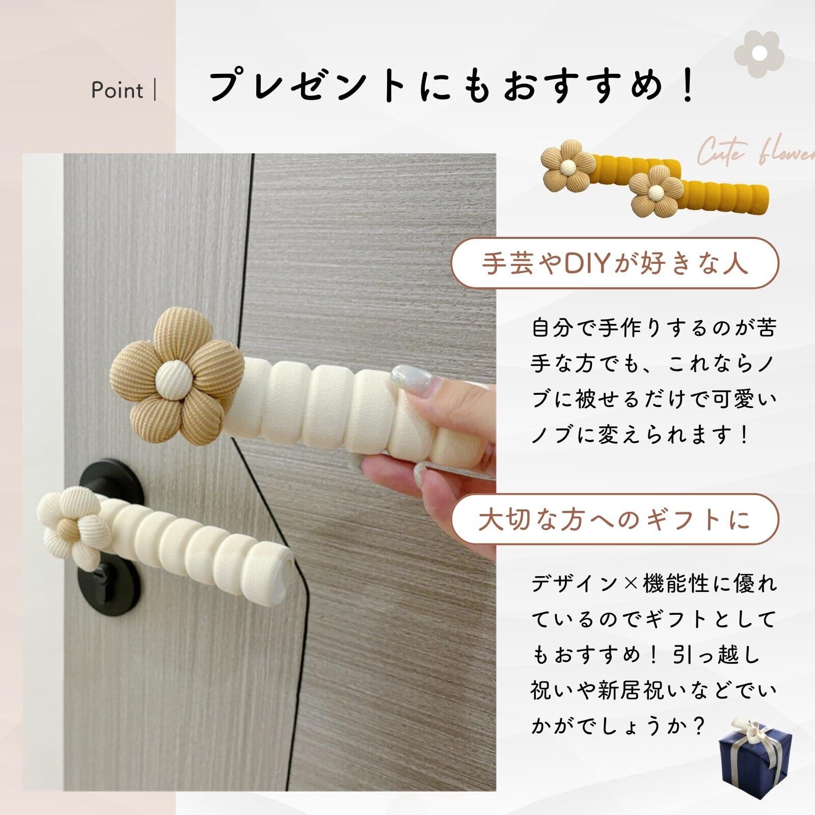 【見た目も使い心地もバツグン!】ワンポイントの可愛い花柄で、ドアノブがおしゃれなデザインに変身 ふんわり優しい素材で触れるたび癒されます。