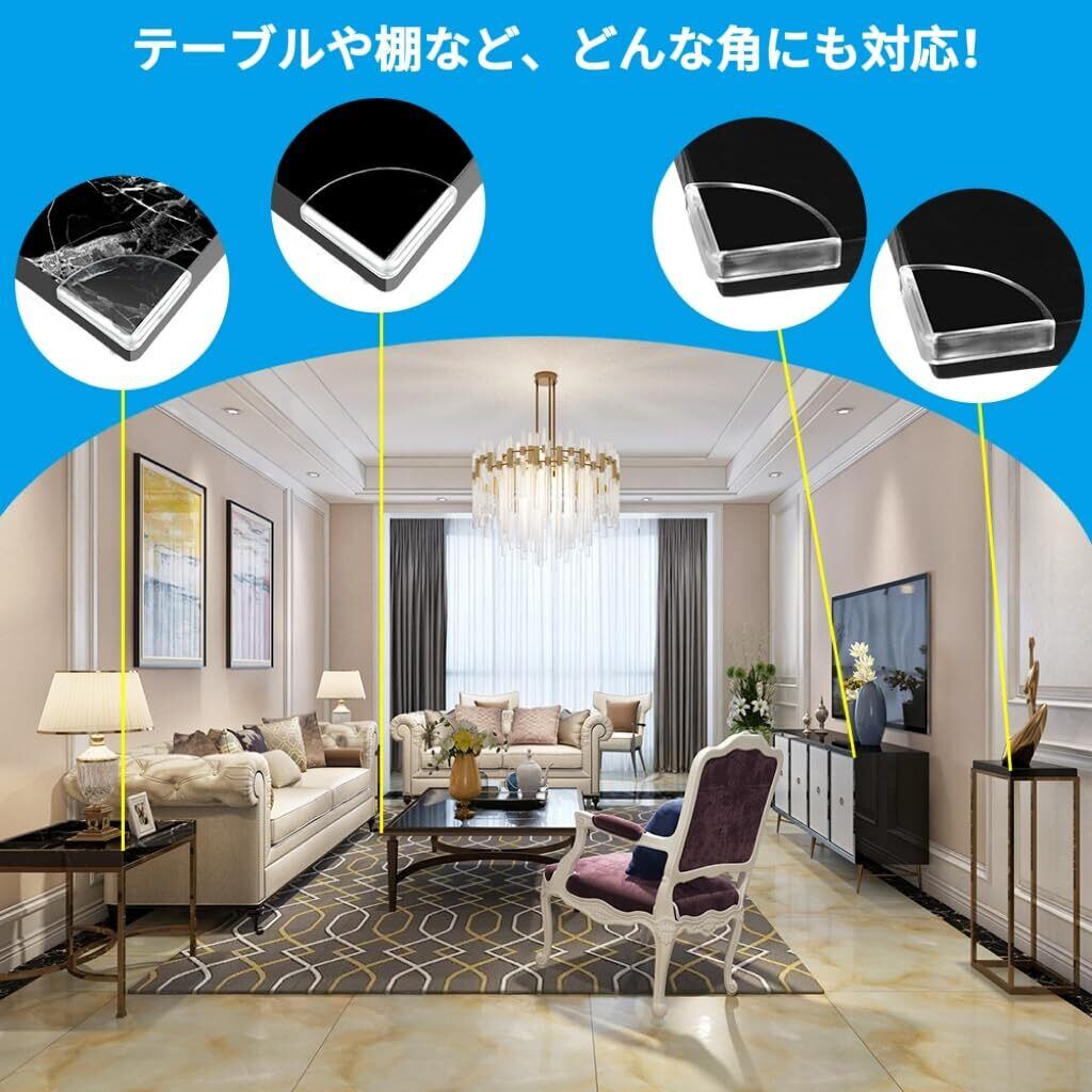 ️【透明でスリムなデザイン】上部・下部の角の両方に取り付けてもインテリアの雰囲気を損ないません。テーブル、デスク、ナイトスタンド、カウンター、収納棚、キャビネット、本棚など様々な家具に最適です。家具を移動する際のキズ防止にも使用できます。