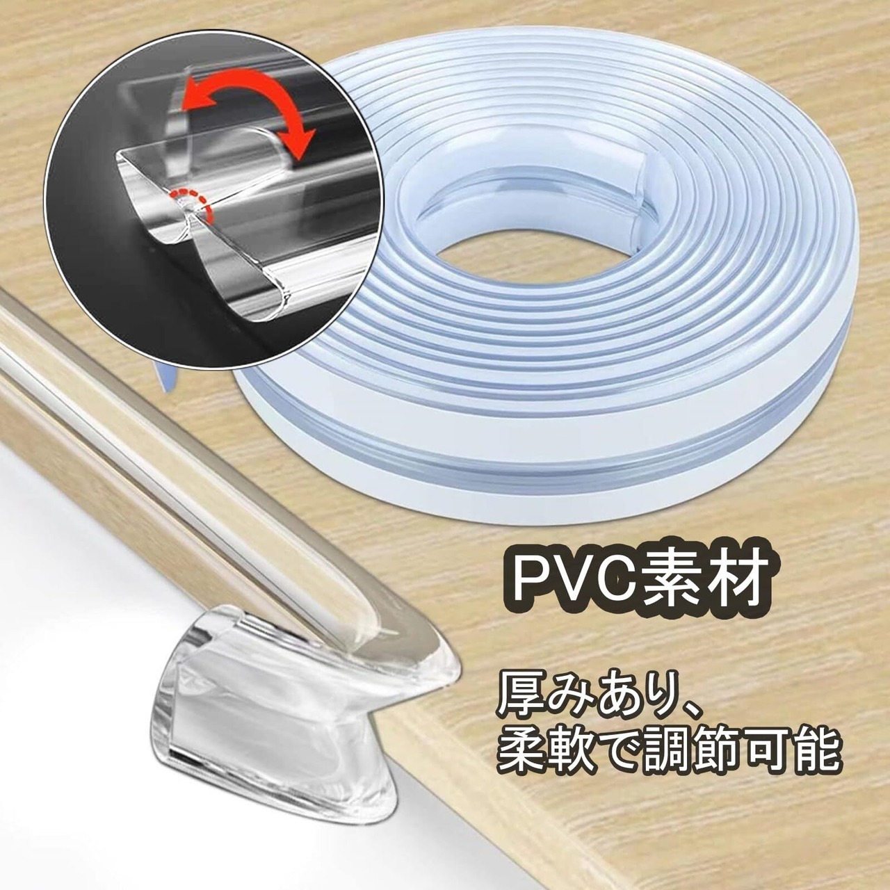 【高品質素材】コーナーガードは高級素材PVC製で、無毒安全な素材です、柔軟性があり緩衝作用を発揮します。裏面の粘着剤は強力で、容易には剥がれません。透明度が高く、家具の美観を損ないません。