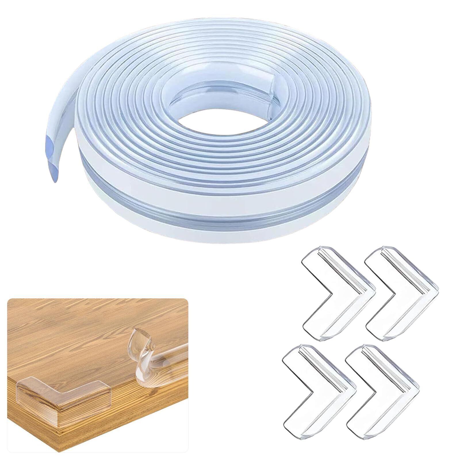 【特価商品】Celugud コーナーガード 透明 全長5m+4個L型 エッジ 保護クッション 両面テープ シール固定 PVC素材 クリア 強力テープ 操作簡単 着脱可能 赤ちゃん ケガ防止 安全対策 地震対策 テーブル かど 保護 家具 机の角 保育園 (5m +4個L型)