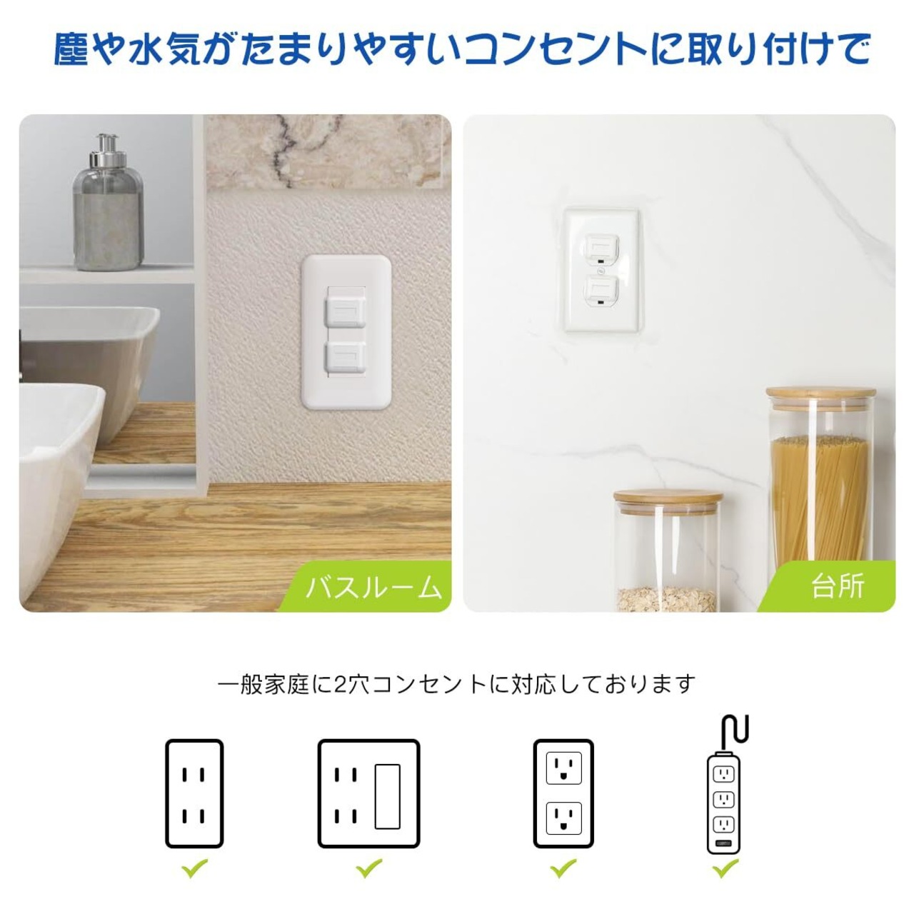 【漏電予防に】 :コンセント カバーには高品質ABS樹脂材料を採用し、安全で耐久性があります。ホワイトデザインも違和感なくコンセントと一体化していて、一般家庭に2穴コンセントに対応しております。