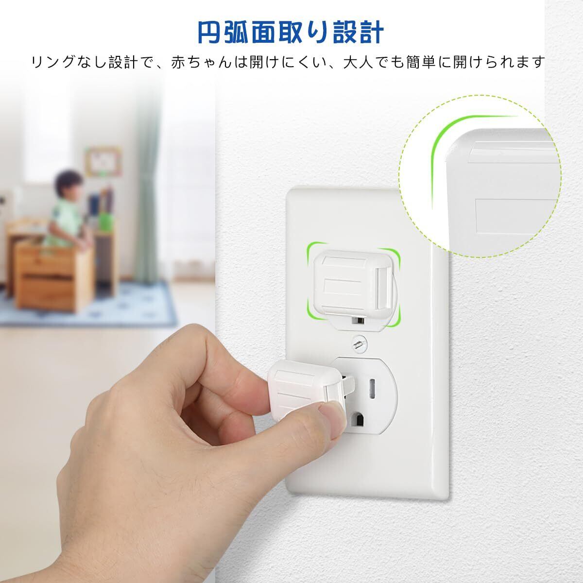 【安全対策】 :リングなし設計で、赤ちゃんは開けにくい。円弧面取り設計には、大人は簡単に開けられます。ペットや子供がいる場所コンセントキャップを使用して、誤って指や物を挿入することから保護することができます。