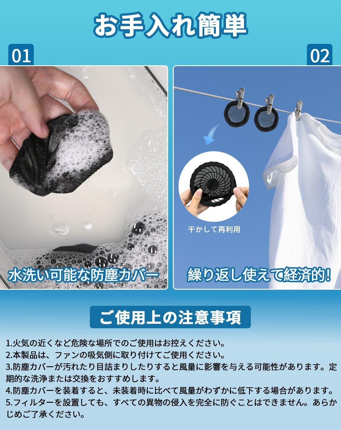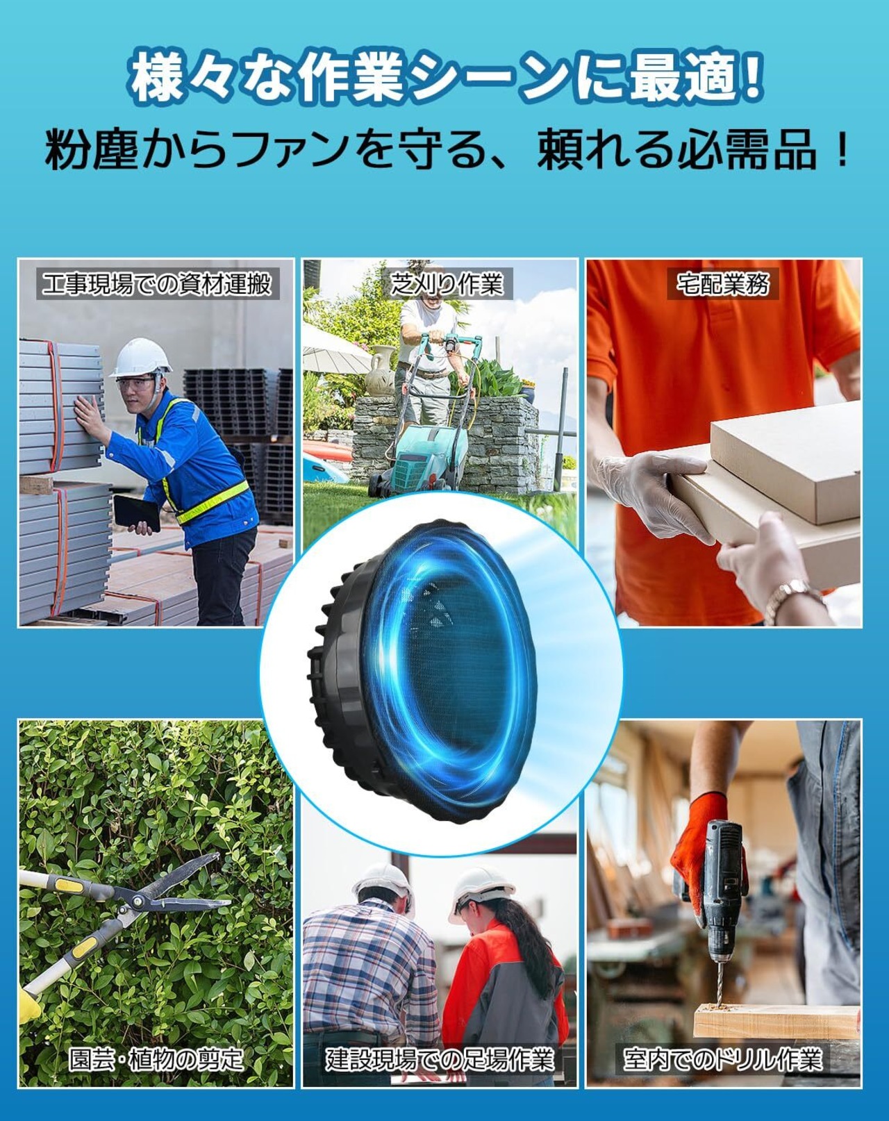 【高効率な防塵対策で快適性とファン寿命を両立】弊社の空調作業服用防塵フィルターは、粉塵や異物の侵入を効果的に防ぎ、作業時の快適性を向上させると同時に、ファンの寿命延長にも貢献します。高品質な100%ポリエステル素材を採用しており、ホコリ・破片・虫などがファン内部へ侵入するのをしっかりガード。粉塵の多い解体工事や農作業などの現場でも、ファンブレードへの汚れの蓄積や故障を防ぎ、清掃・メンテナンスの頻度と手間を大幅に軽減します。ホコリが服の中に入りにくく、人体にも優しい設計で、ファンの清掃に悩まされている方にも最適なアイテムです。