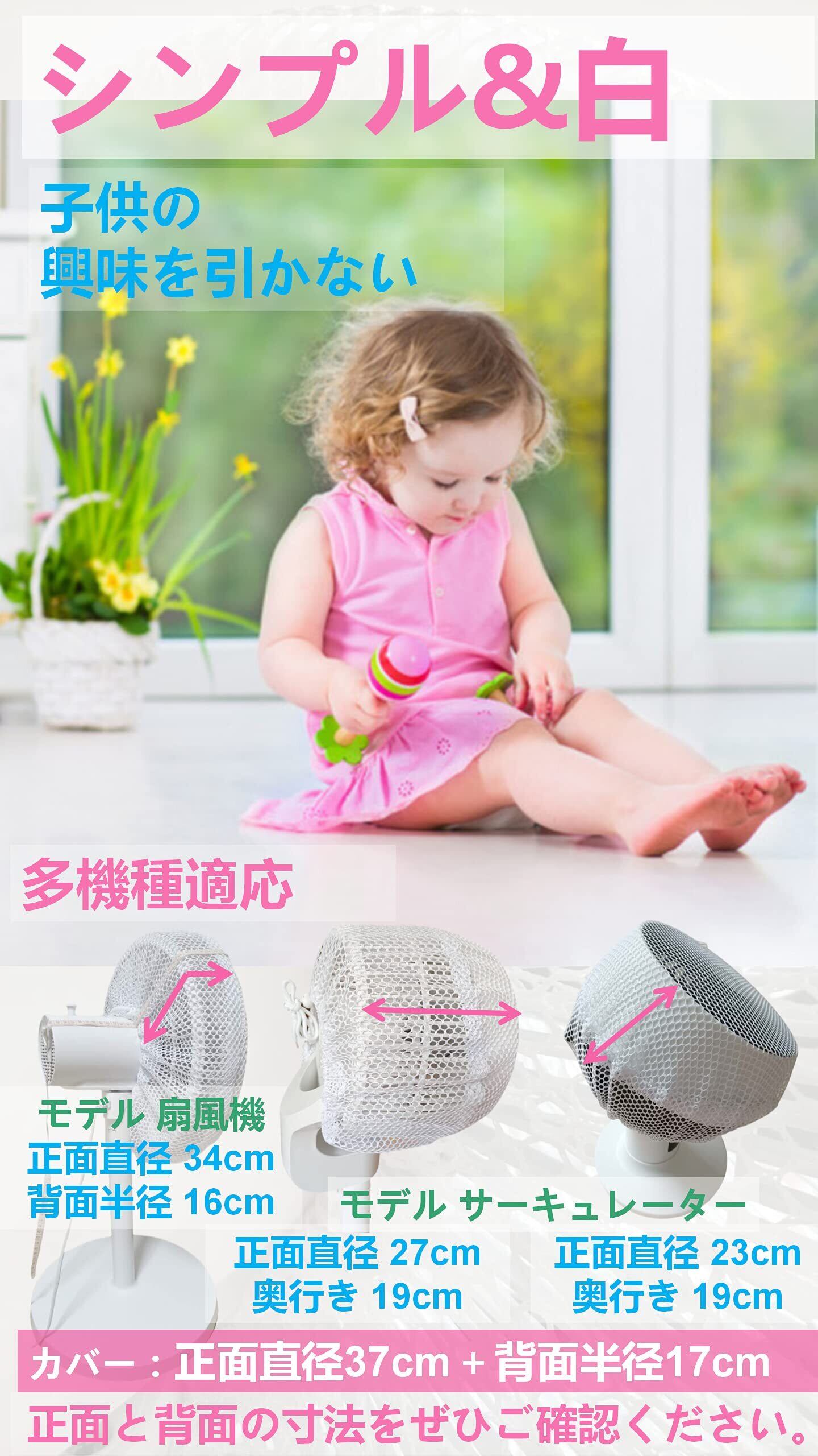 SYOSINN 扇風機カバー 安全カバー サーキュレーターカバー 子供 裏までかかる 子供指はさみ防止 赤ちゃん 紐で固定するタイプ ホワイト 無地 カバー正面直径37cm+背面半径17cm 家庭用 1枚入り